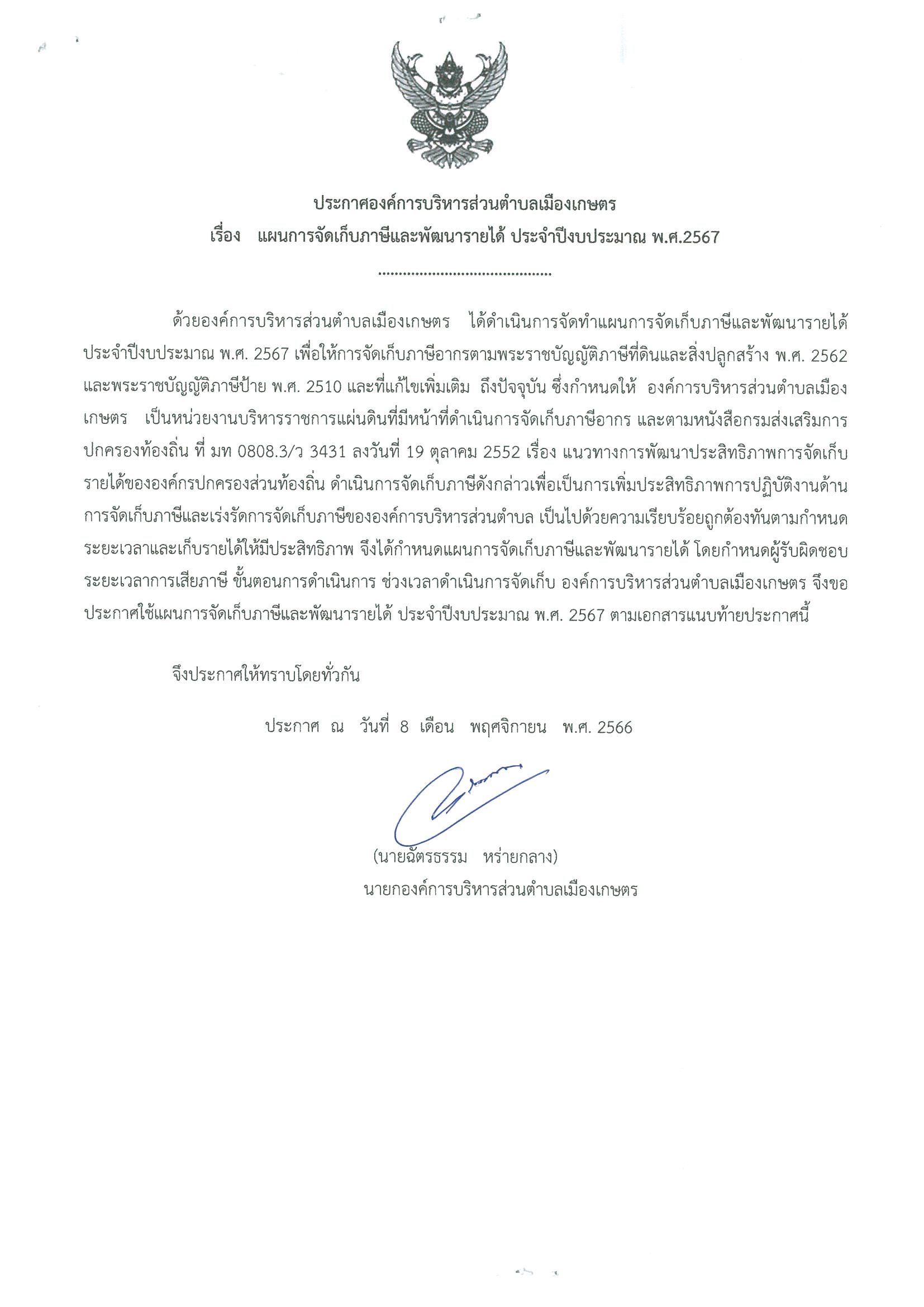 แผนการจัดเก็บภาษีและพัฒนารายได้ ประจำปีงบประมาณ พ.ศ. 2567