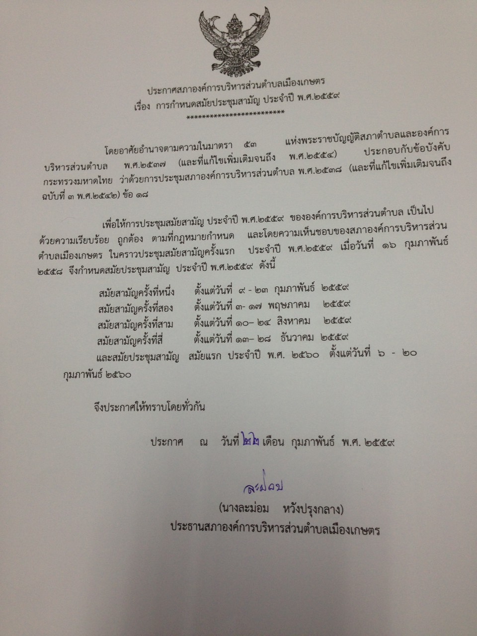 ประกาศกำหนดสมัยประชุมสามัญ ประจำปี พ.ศ. 2559