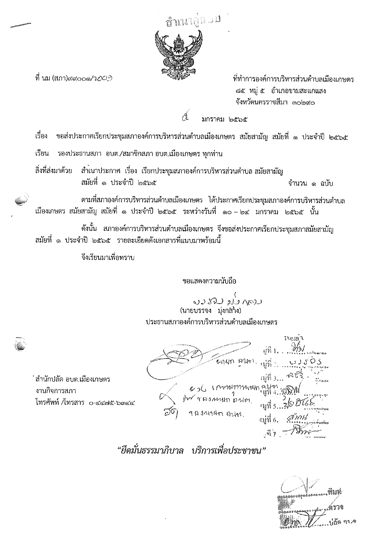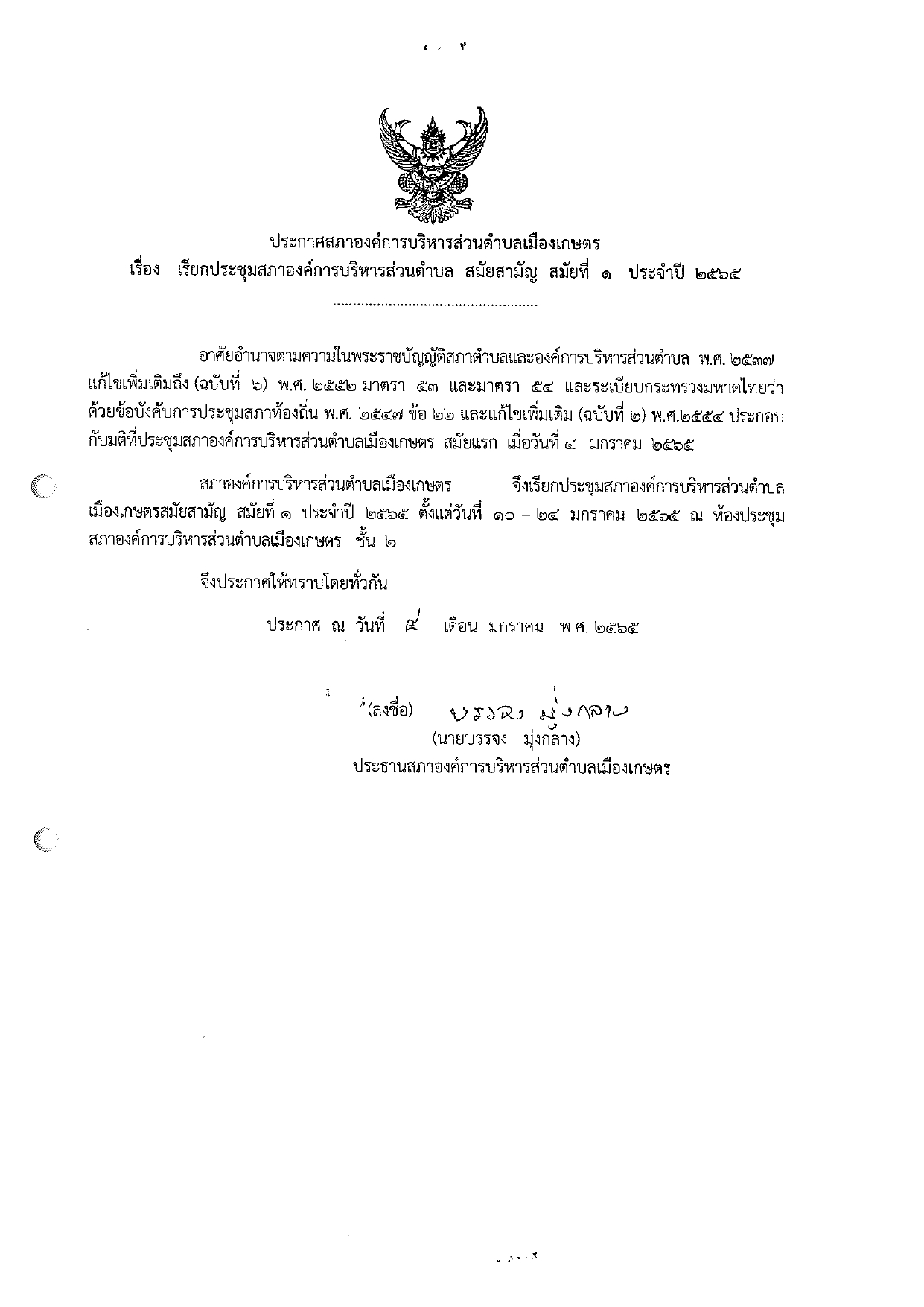 ประกาศเรียกประชุมสภา สมัยสามัญ สมัยที่ 1/2565