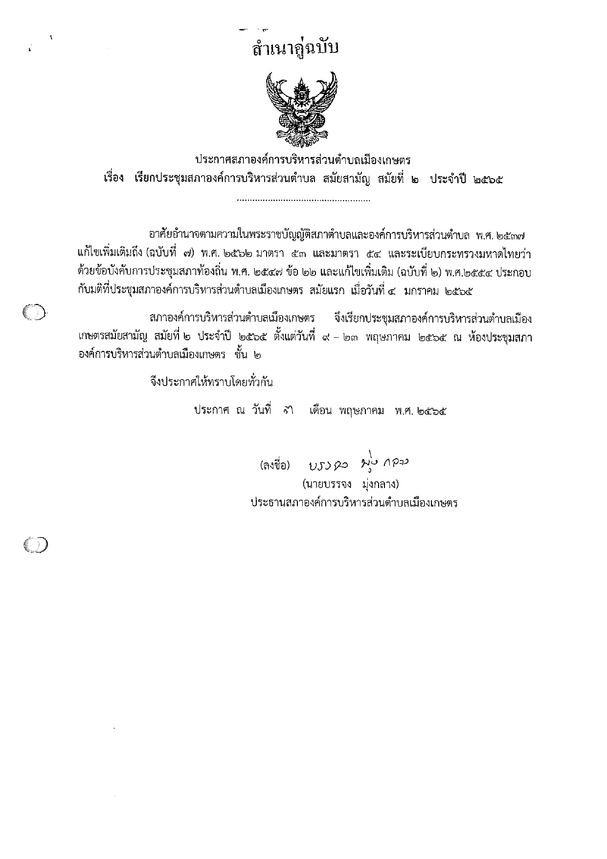 ประกาศเรียกประชุมสภาสมัยสามัญ สมัยที่ 2/2565