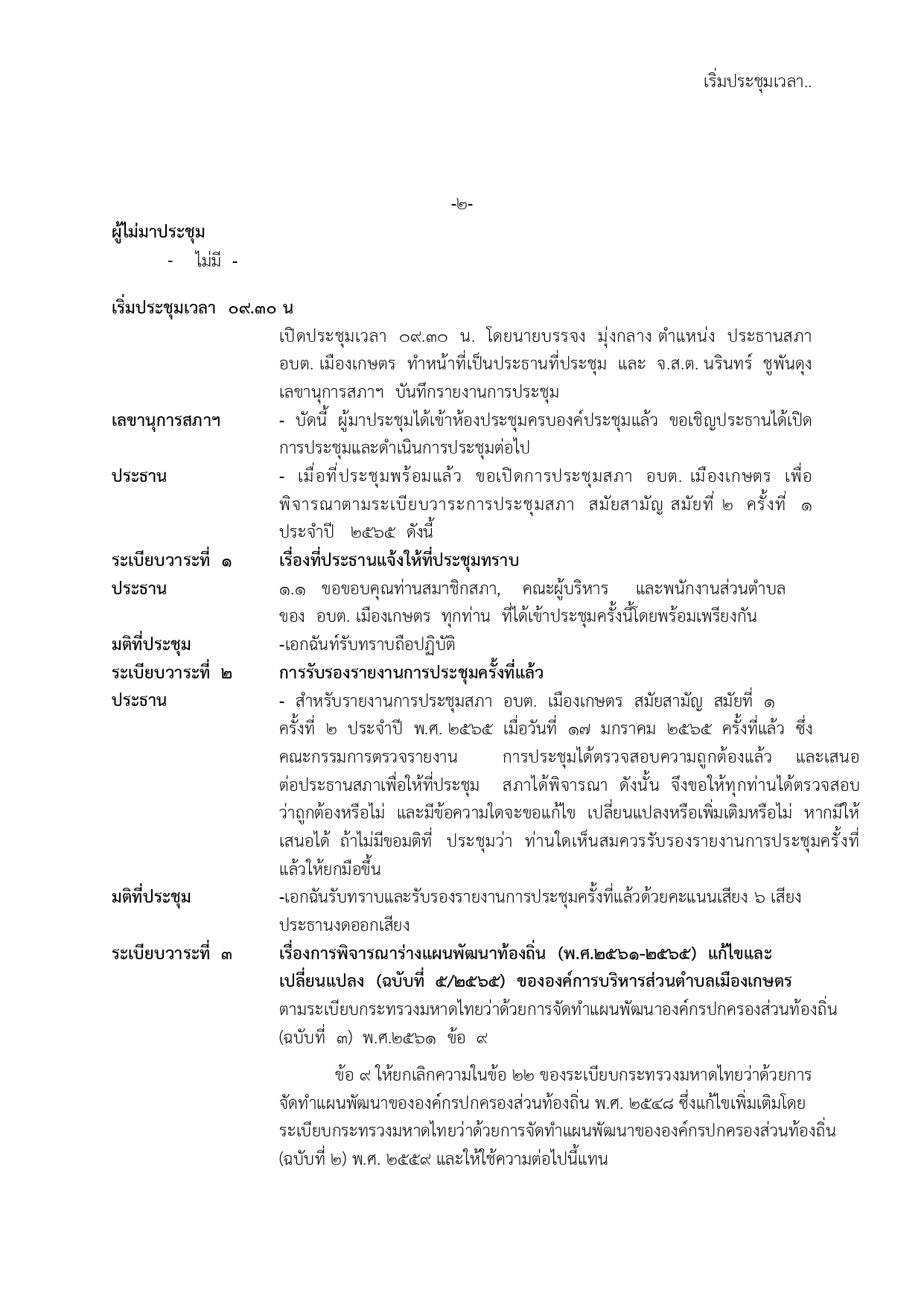 รายงานการประชุมสภา อบต.เมืองเกษตร สมัยสามัญที่ 2/2565