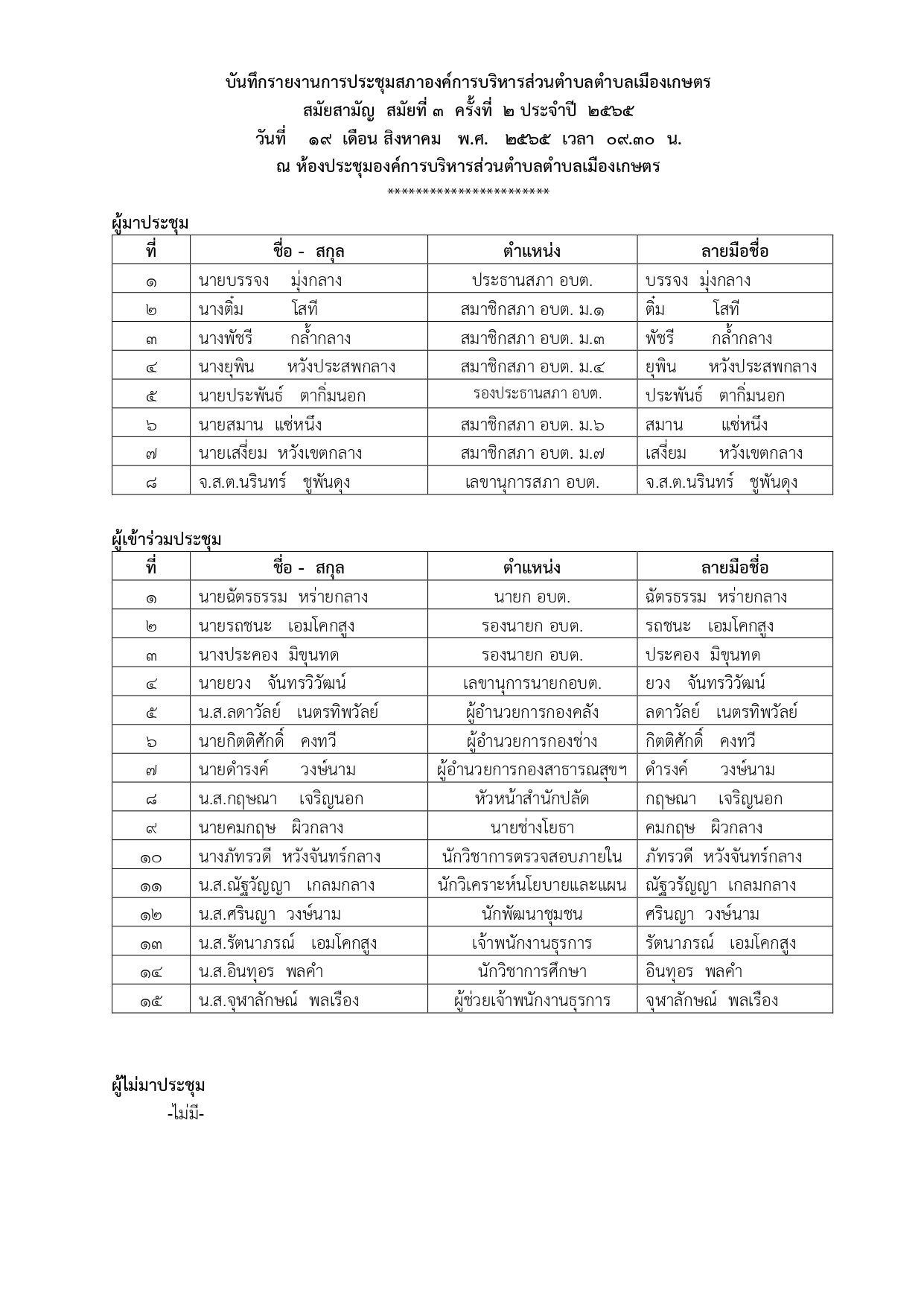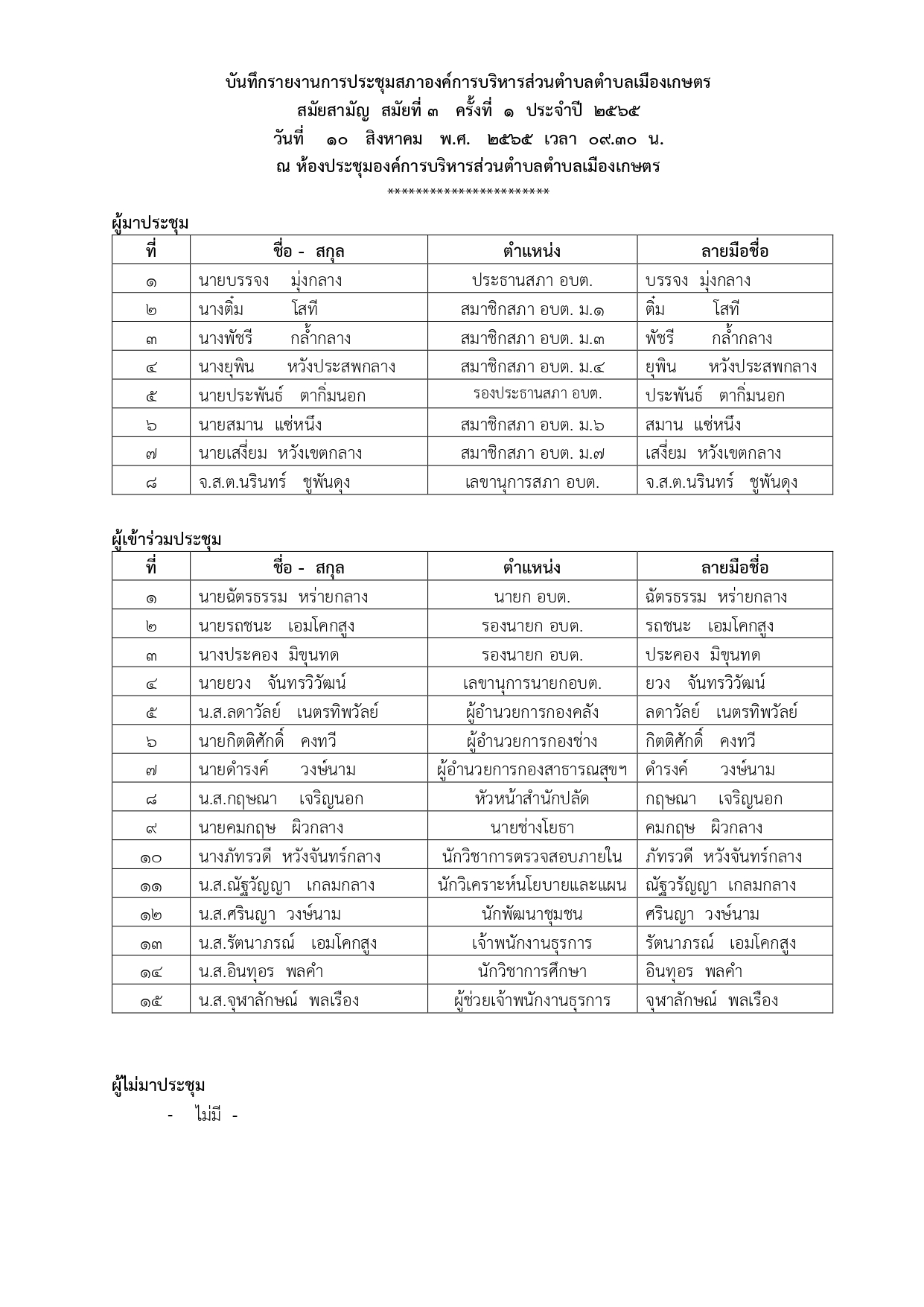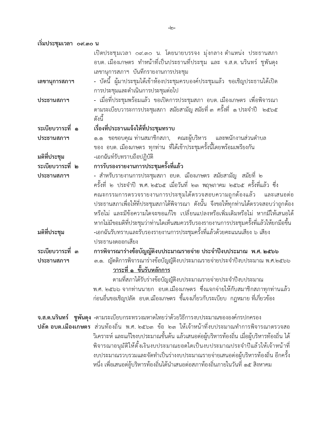 รายงานการประชุมสภา อบต.เมืองเกษตร สมัยสามัญที่ 3/2565
