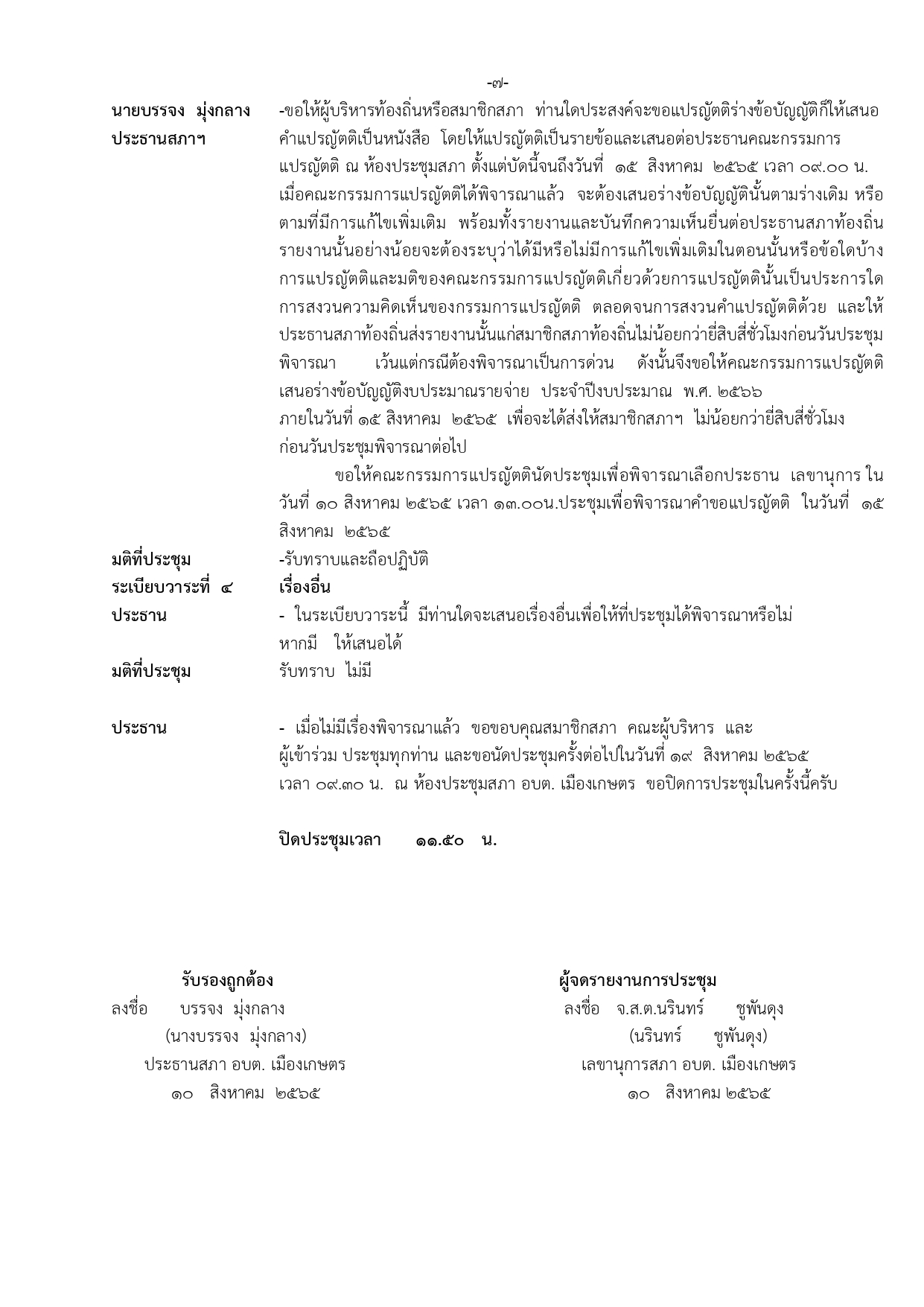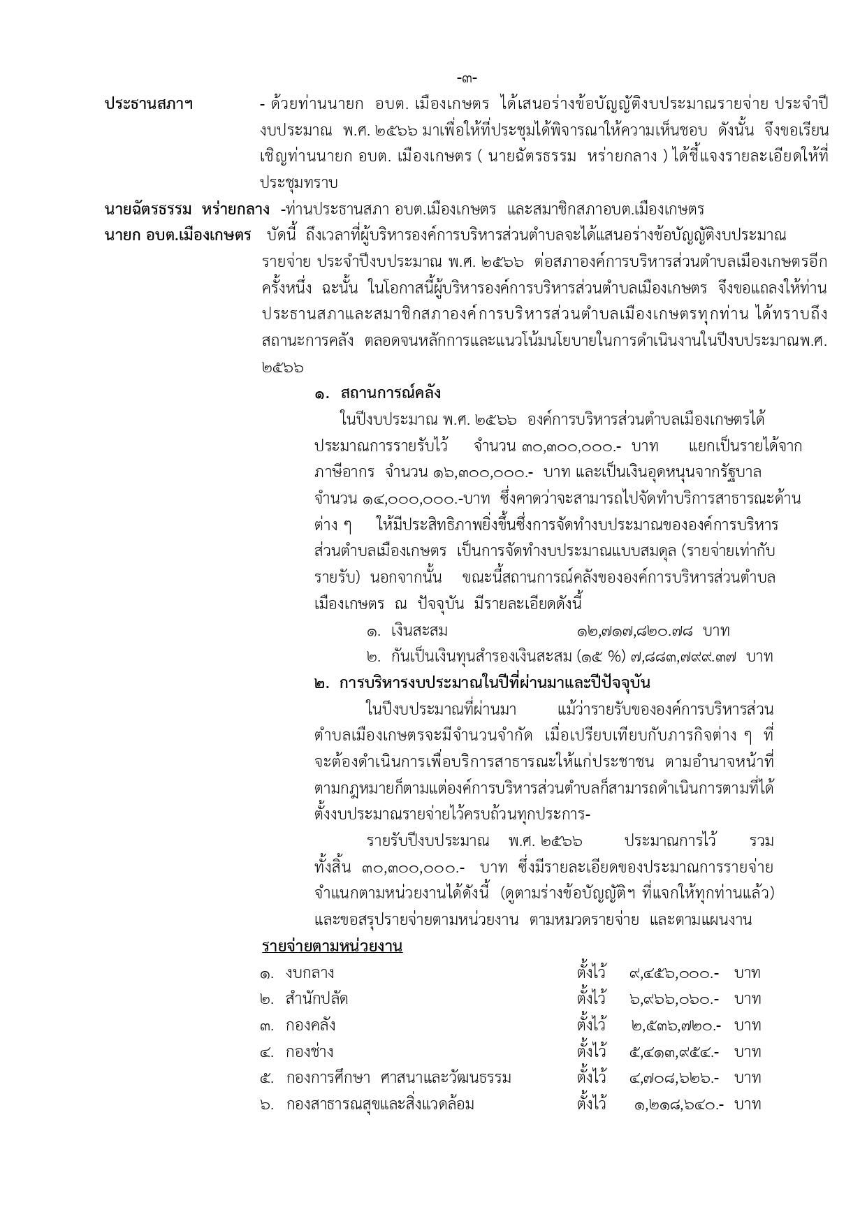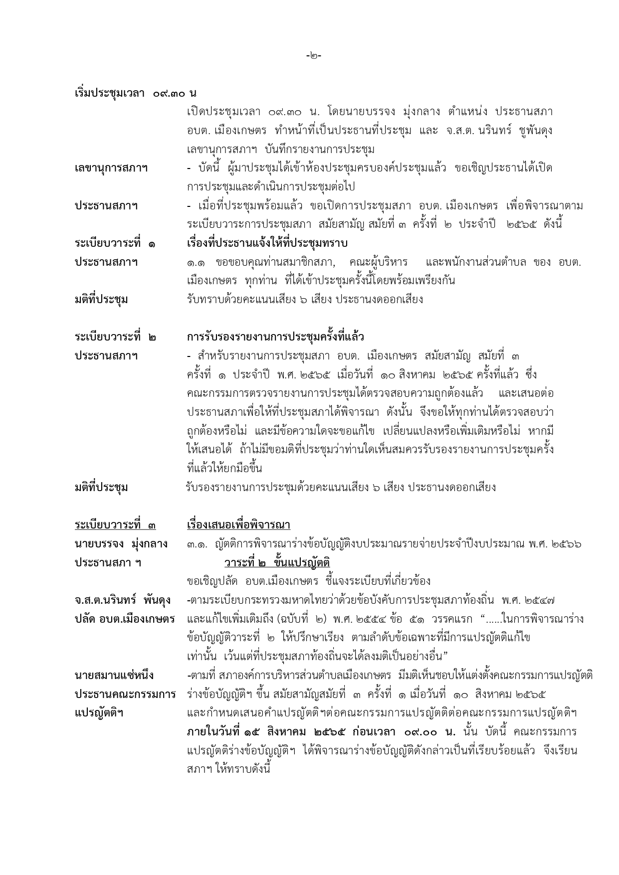 รายงานการประชุมสภา อบต.เมืองเกษตร สมัยสามัญที่ 3/2565