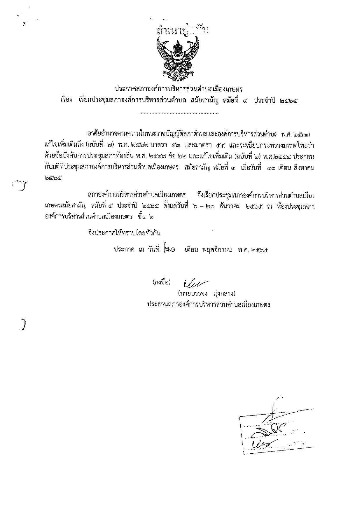 ประกาศเรียกประชุมสภาสมัยสามัญ สมัยที่ 4/2565