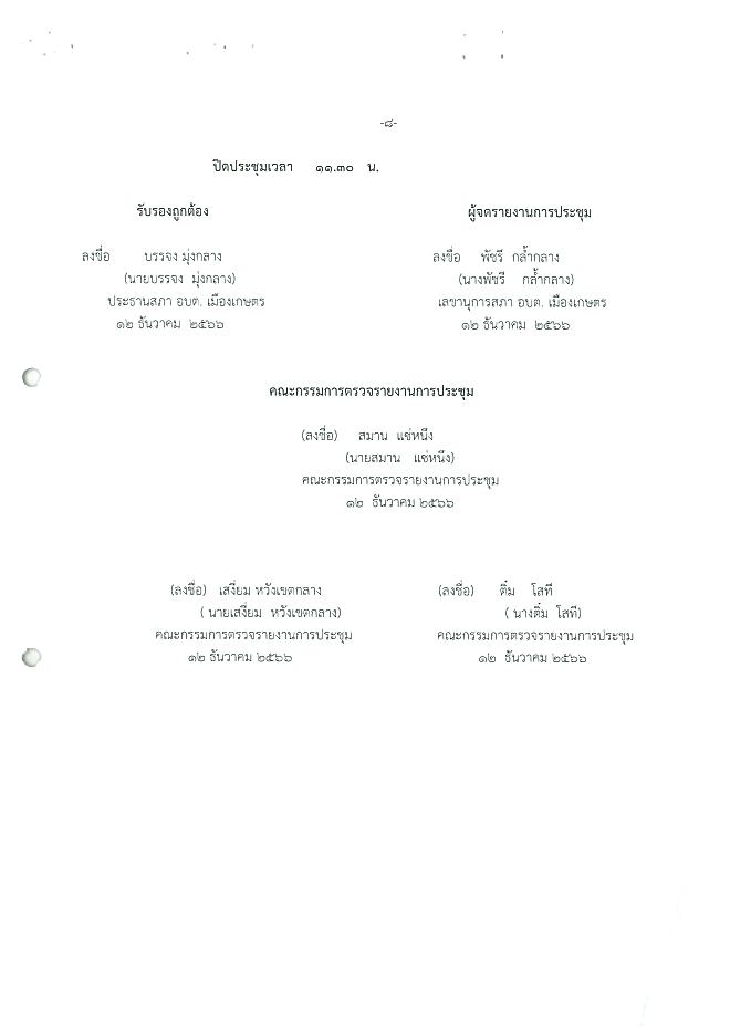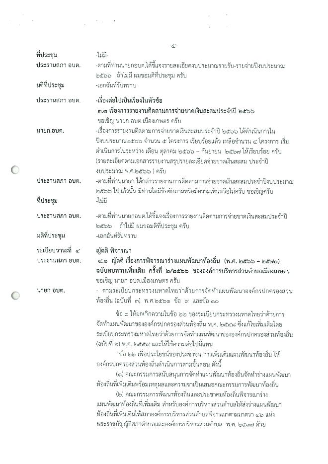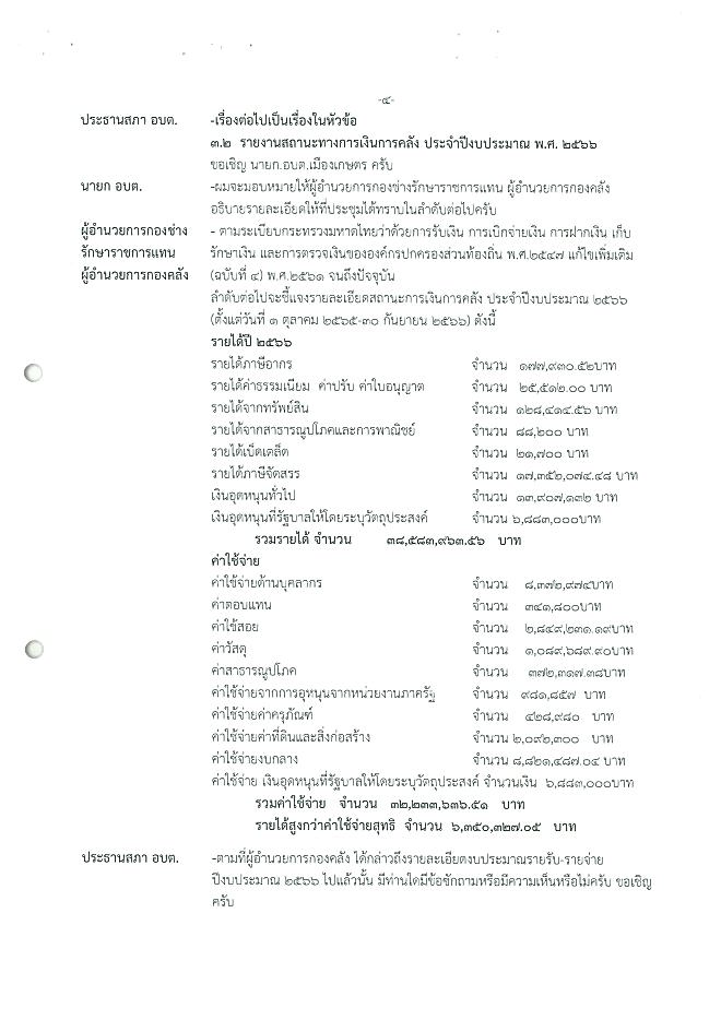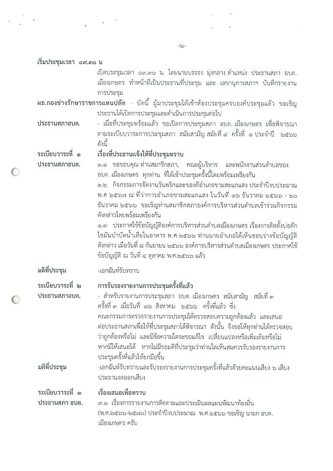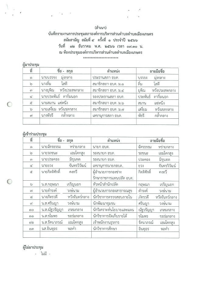 สำเนารายงานการประชุมสภาอบต.เมืองเกษตร สมัยสามัญ สมัยที่ 4 ครั้งที่ 1ประจำปี 2566