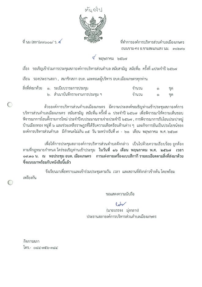 ส่งหนังสือเชิญประชุมสภาสมัยสามัญที่ 2 ครั้งที่ 1