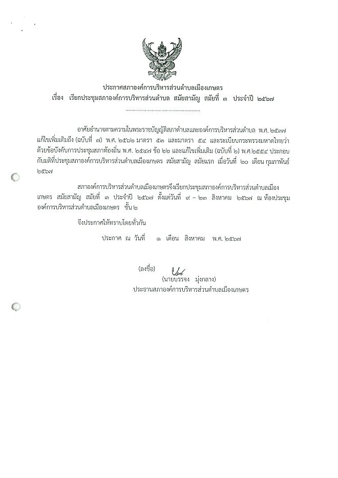 ประกาศเรียกประชุมสภา สมัยสามัยสมัยที่ 3 ปี 2567