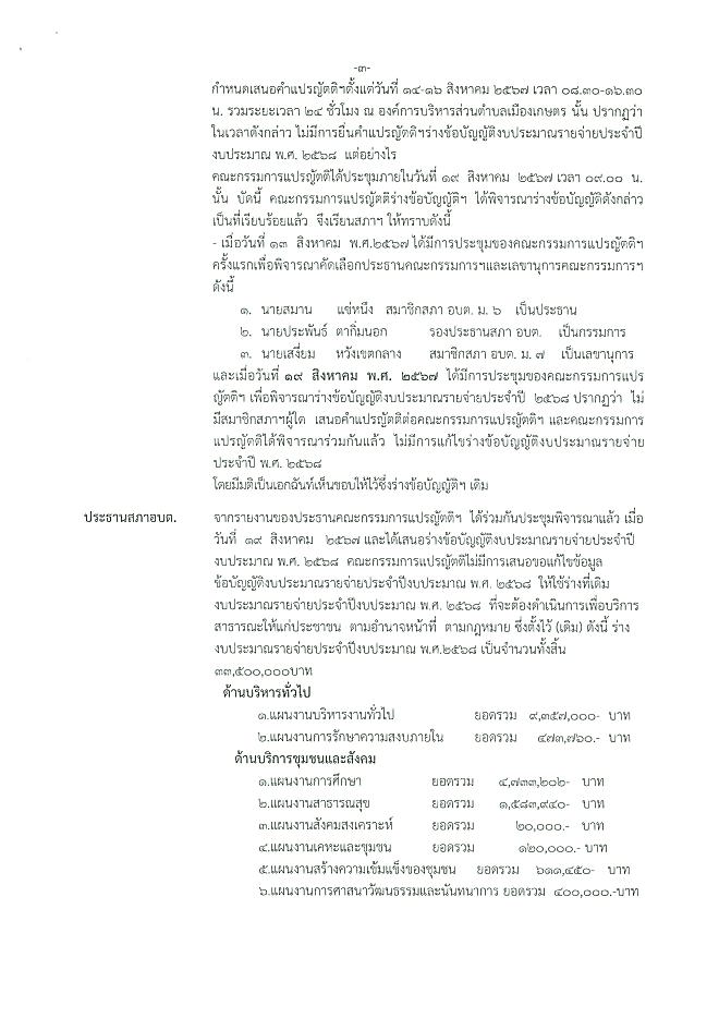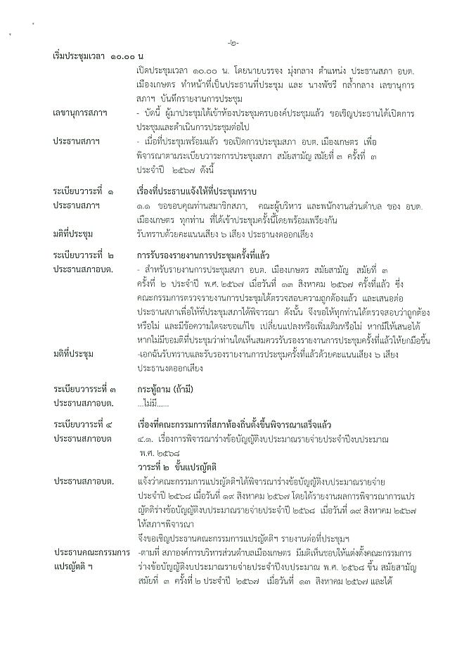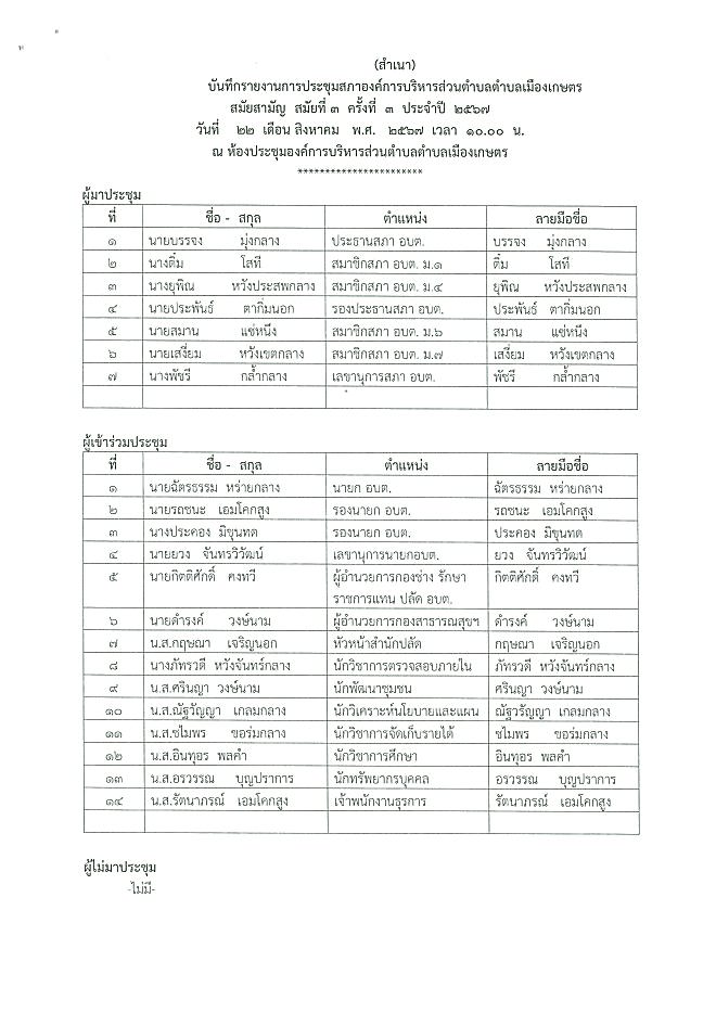 รานงานการประชุมสภาอบต.เมืองเกษตร สมัยสามัญ สมัยที่ 3 ครั้งที่ 3 ประจำปี 2567