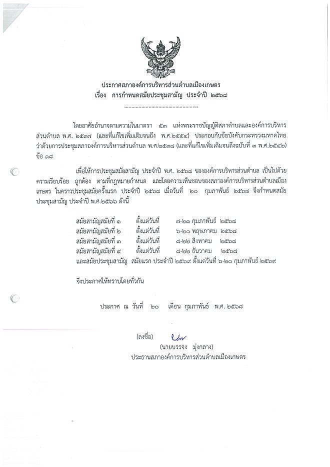 ประกาศกำหนดประชุมสภาปี 2568