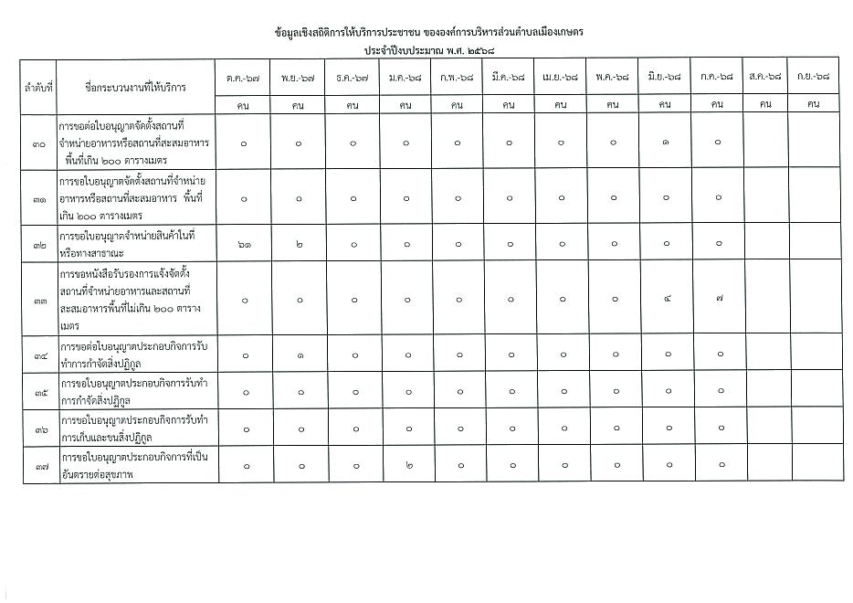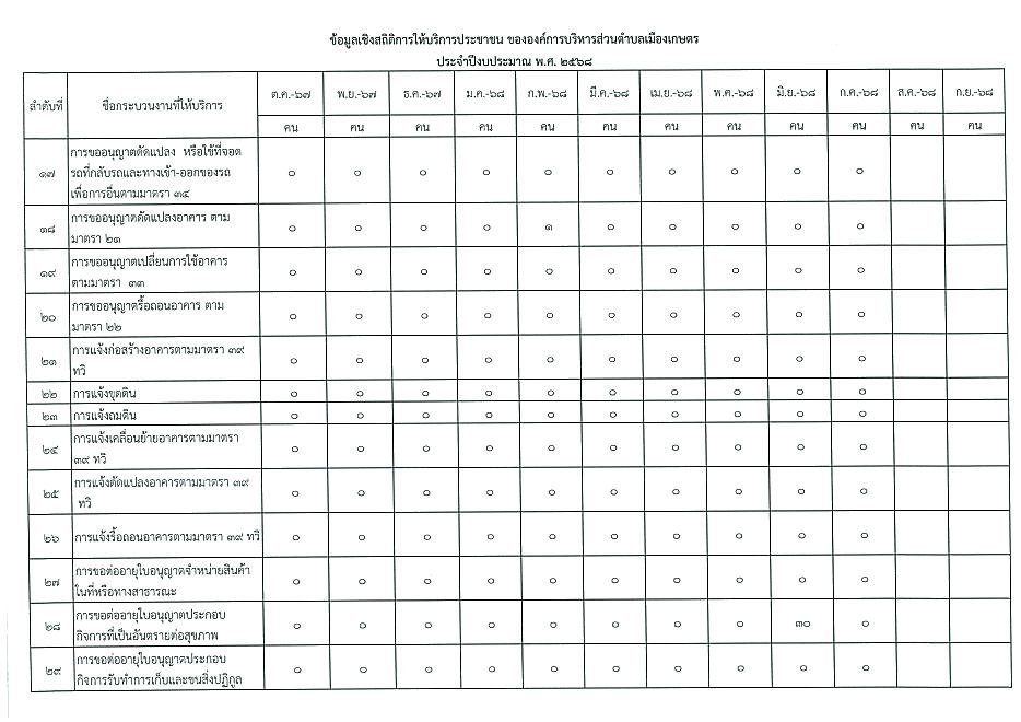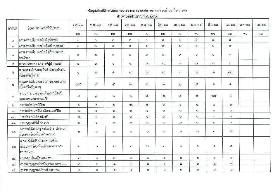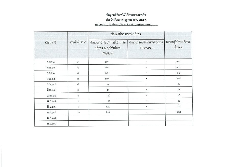ข้อมูลเชิงสถิติการให้บริการประชาชนของ อบต.เมืองเกษตร ประจำเดือน กรกฎาคม 2568