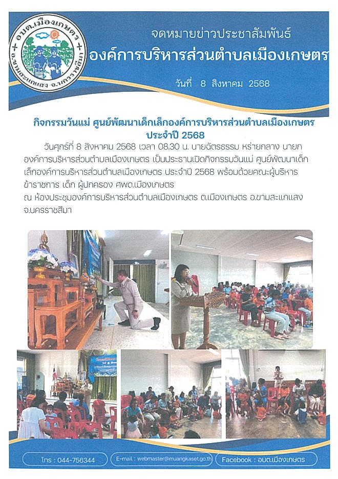 กิจกรรมวันแม่ ศูนย์พัฒนาเด็กเล็กองค์การบริหารส่วนตำบลเมืองเกษตร ประจำปี 2568