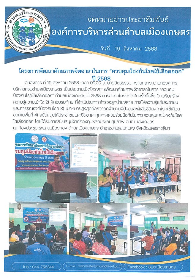 โครงการพัฒนาศักยภาพจิตอาสาในการ "ควบคุมป้องกันไข้เลือดออก" ปี 2568