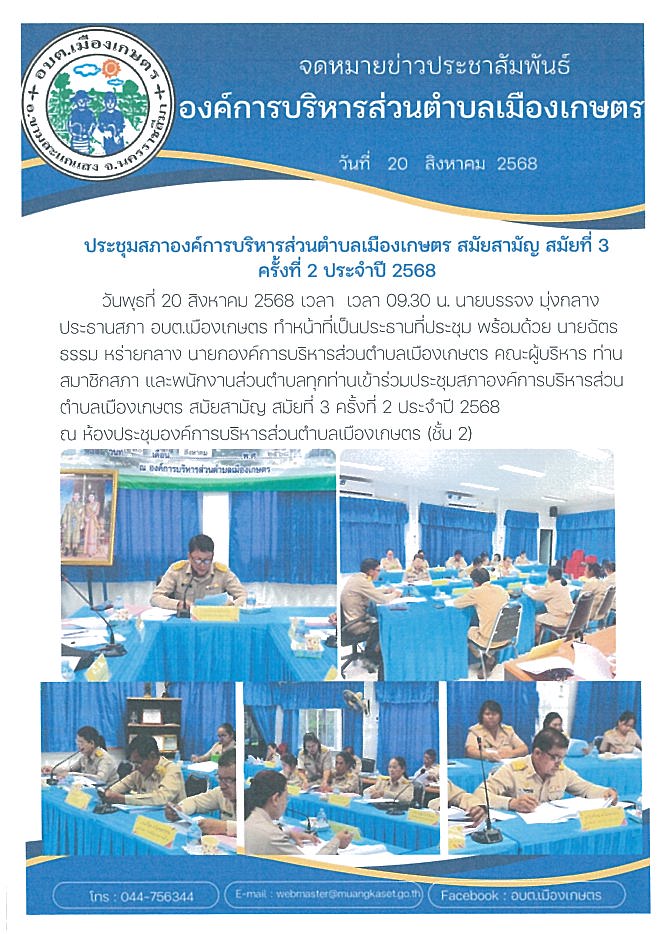 ประชุมสภาองค์การบริหารส่วนตำบลเมืองเกษตร สมัยสามัญ สมัยที่ 3 ครั้งที่ 1 ปี 2568