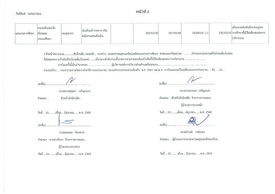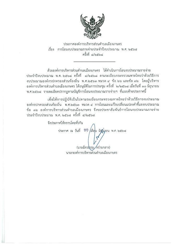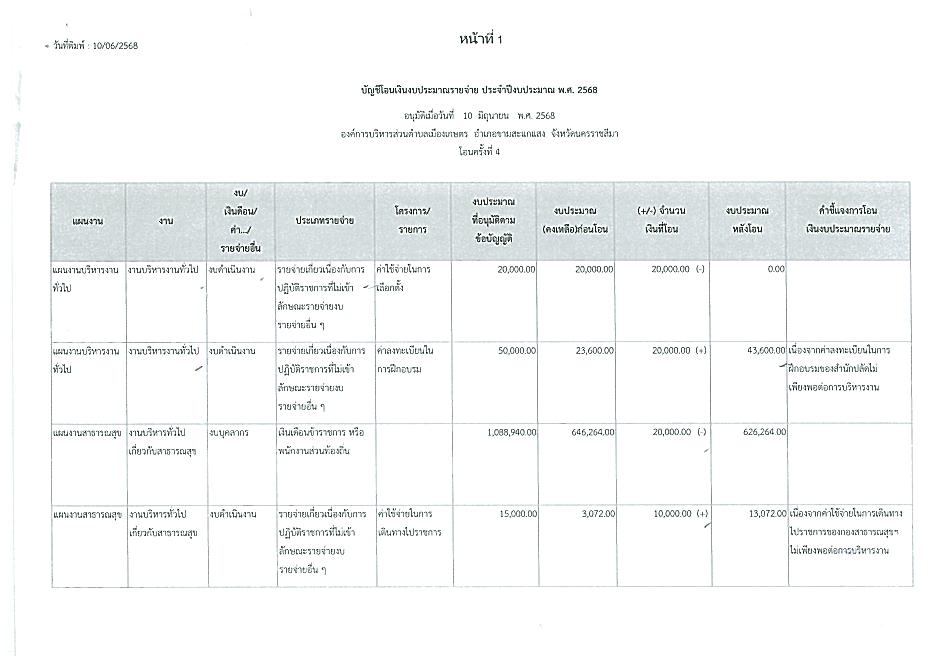 โอนงบประมาณรายจ่ายประจำปีงบประมาณ 2568 ครั้งที่ 4/2568