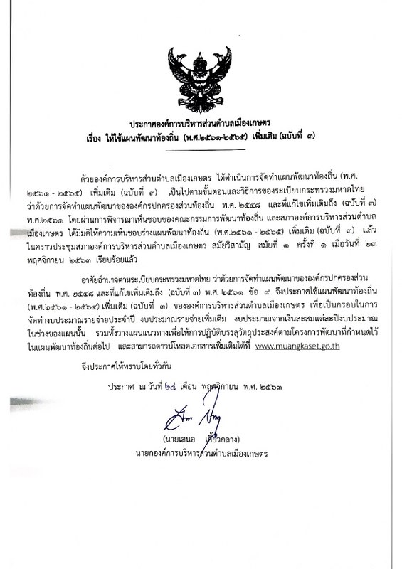 แผนพัฒนาท้องถิ่น (พ.ศ.2561-2565) เพิ่มเติม (ฉบับที่ 3)