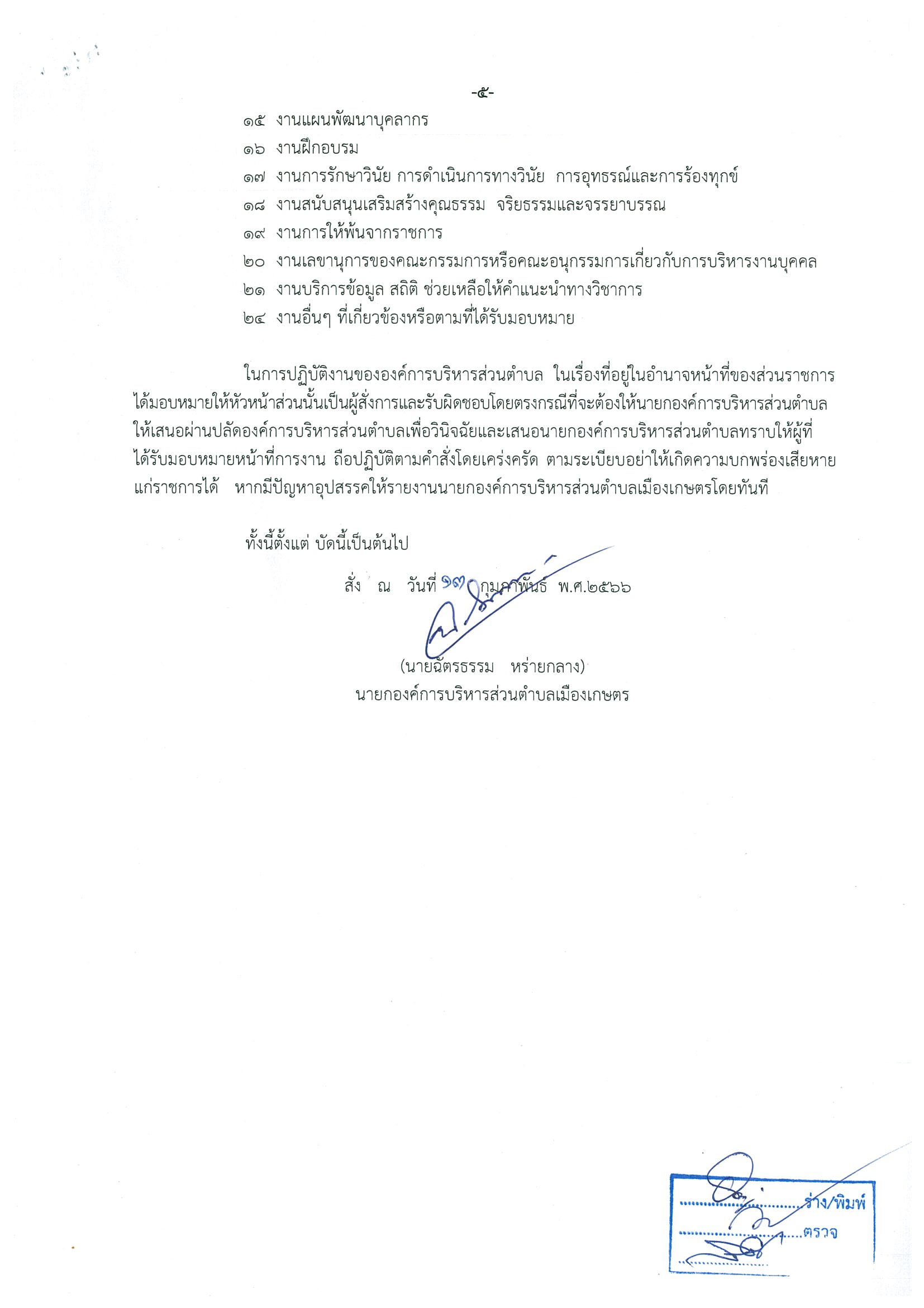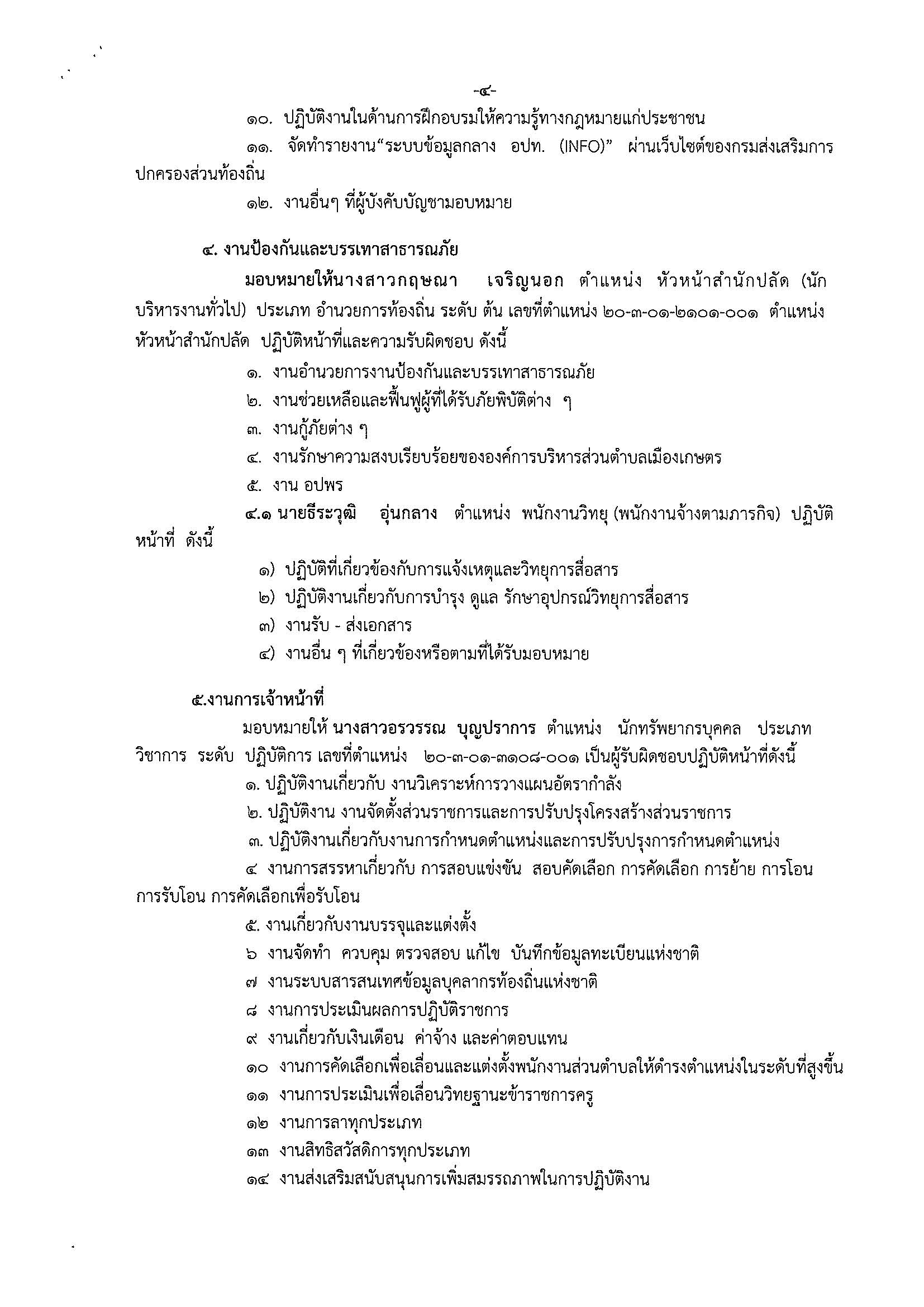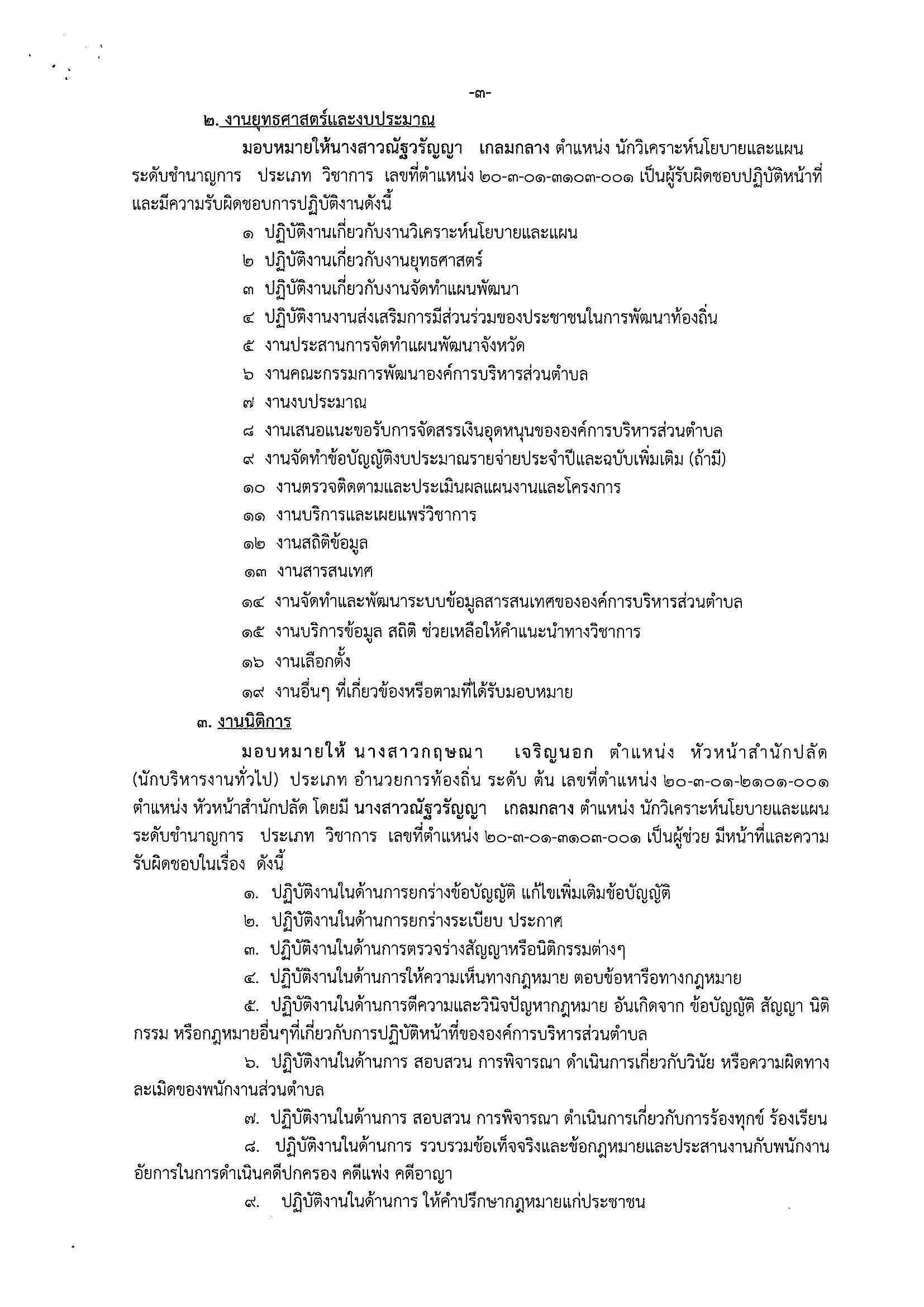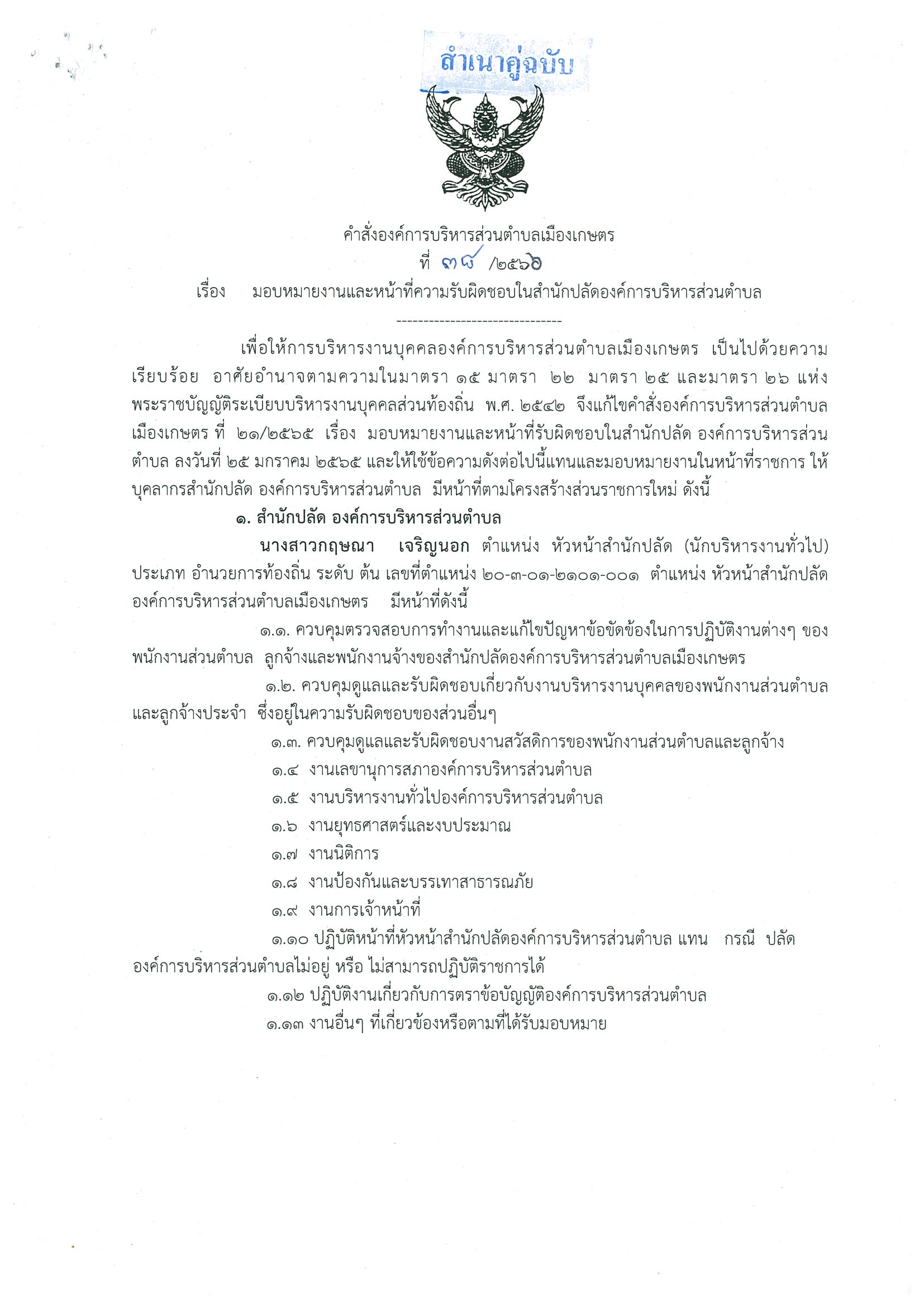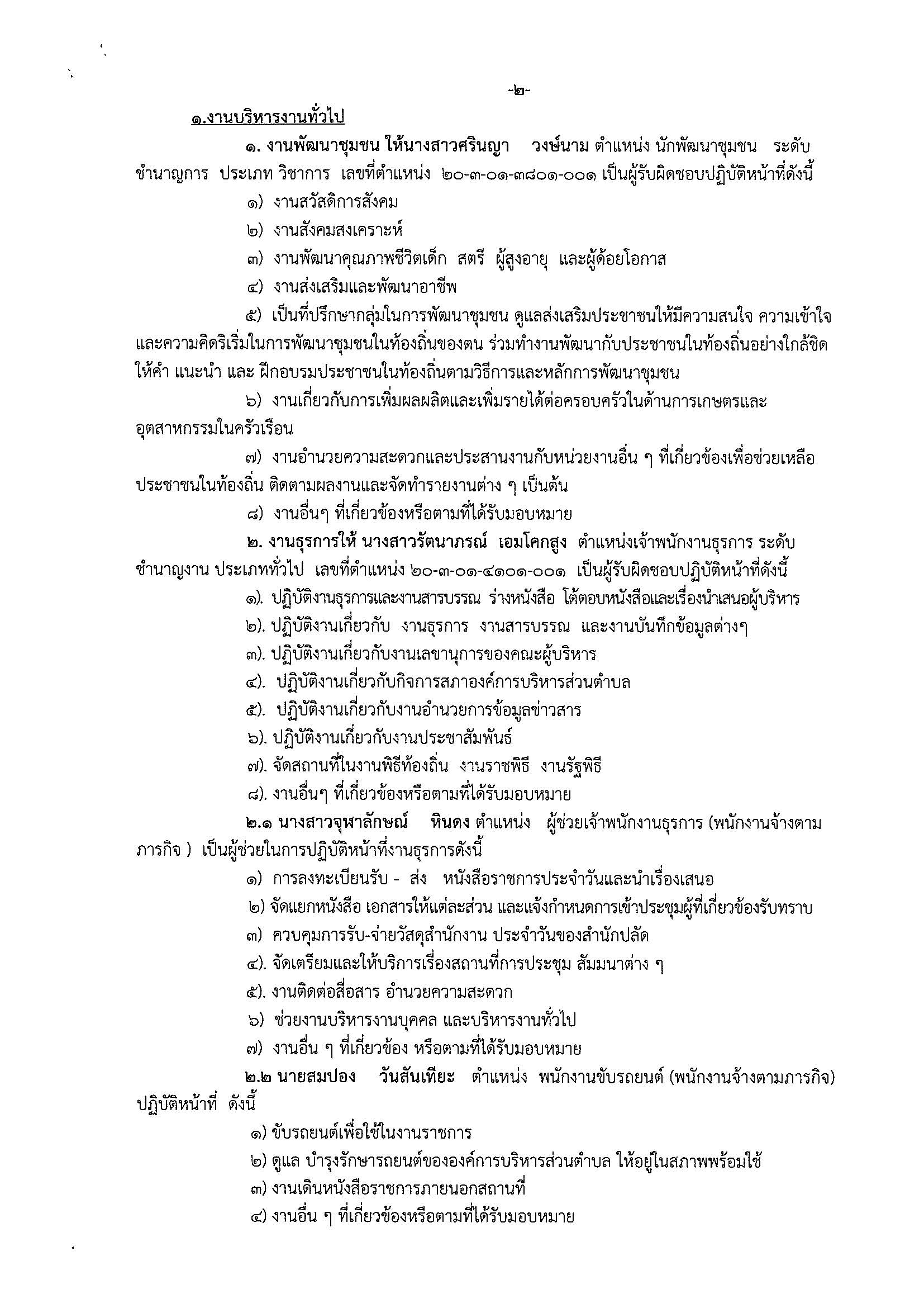 มอบหมายงานและหน้าที่ความรับผิดชอบในสำนักปลัดองค์การบริหารส่วนตำบล