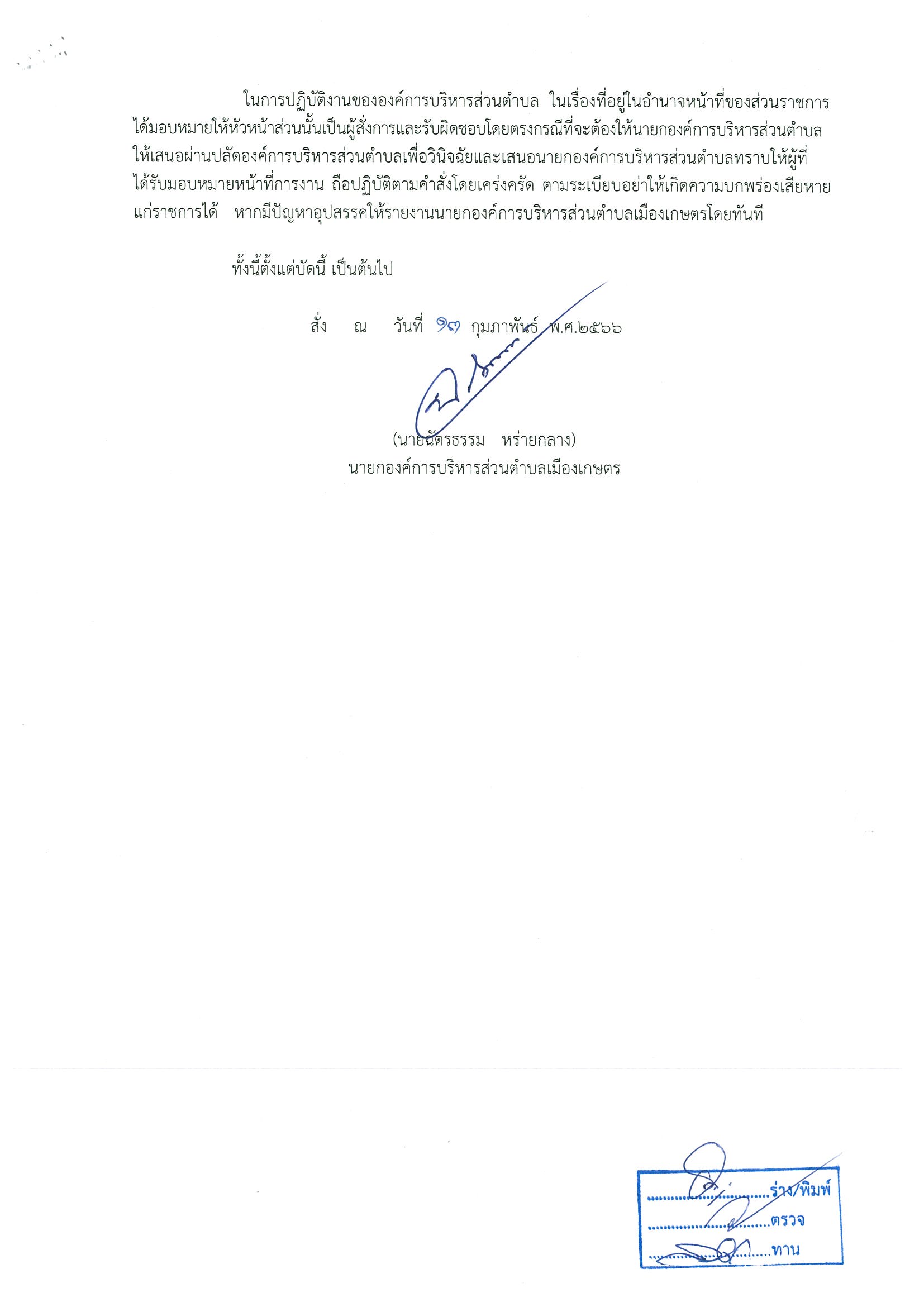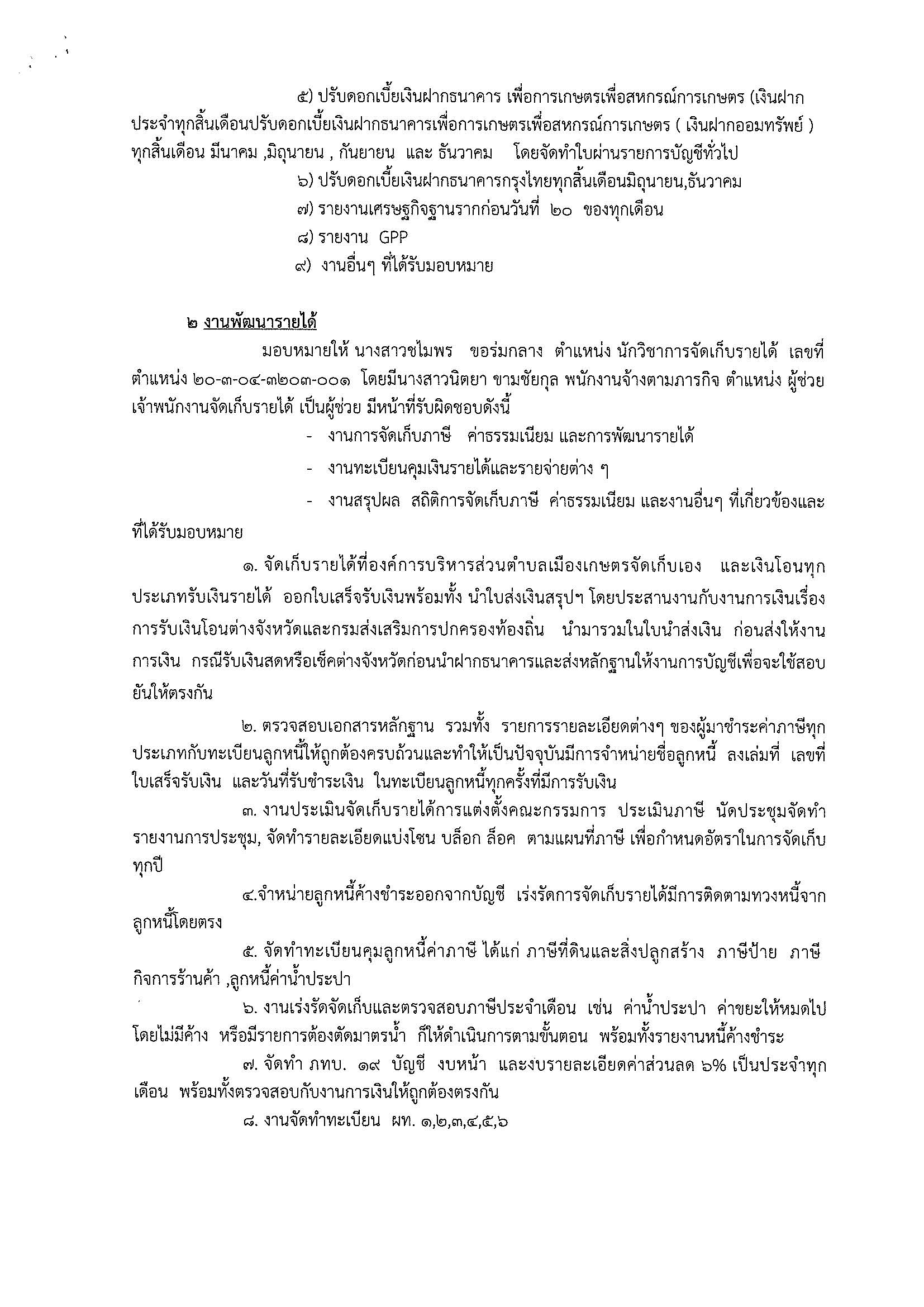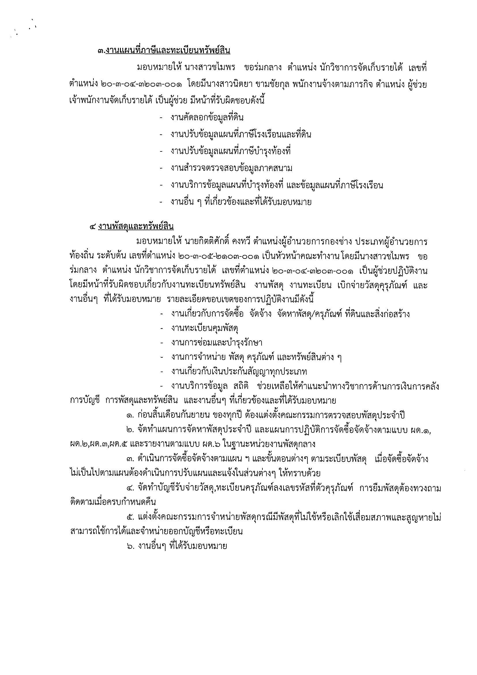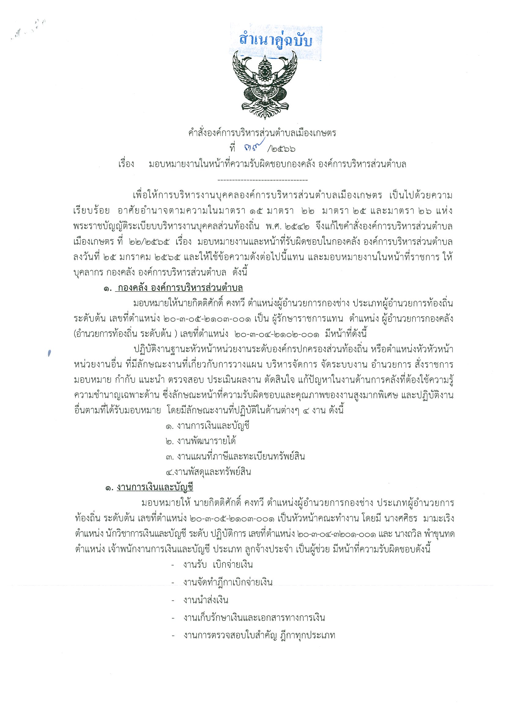 มอบหมายงานในหน้าที่ความรับผิดชอบกองคลัง องค์การบริหารส่วนตำบล
