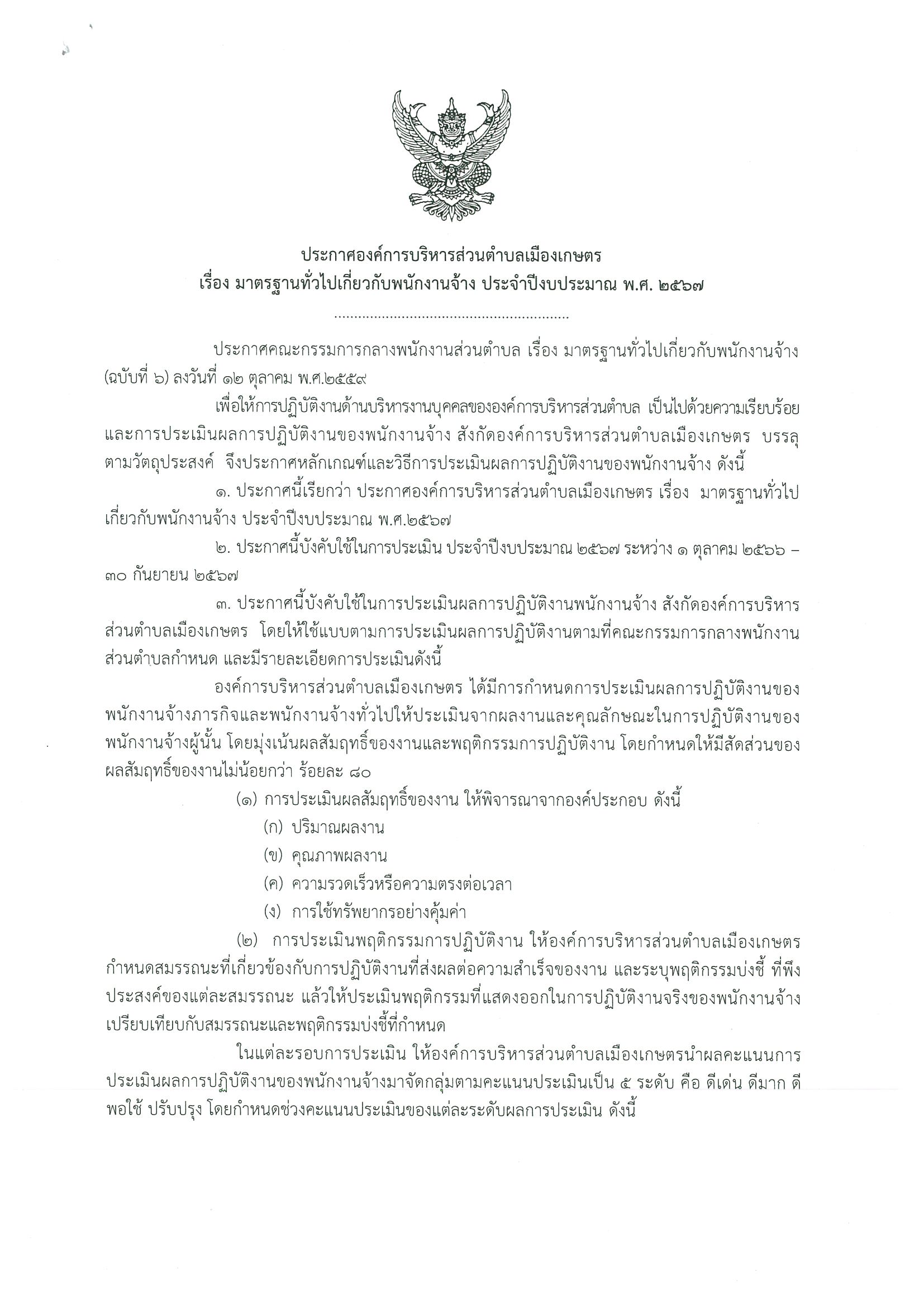 มาตรฐานทั่วไปเกี่ยวกับพนักงานจ้าง ประจำปีงบประมาณ พ.ศ. 2567
