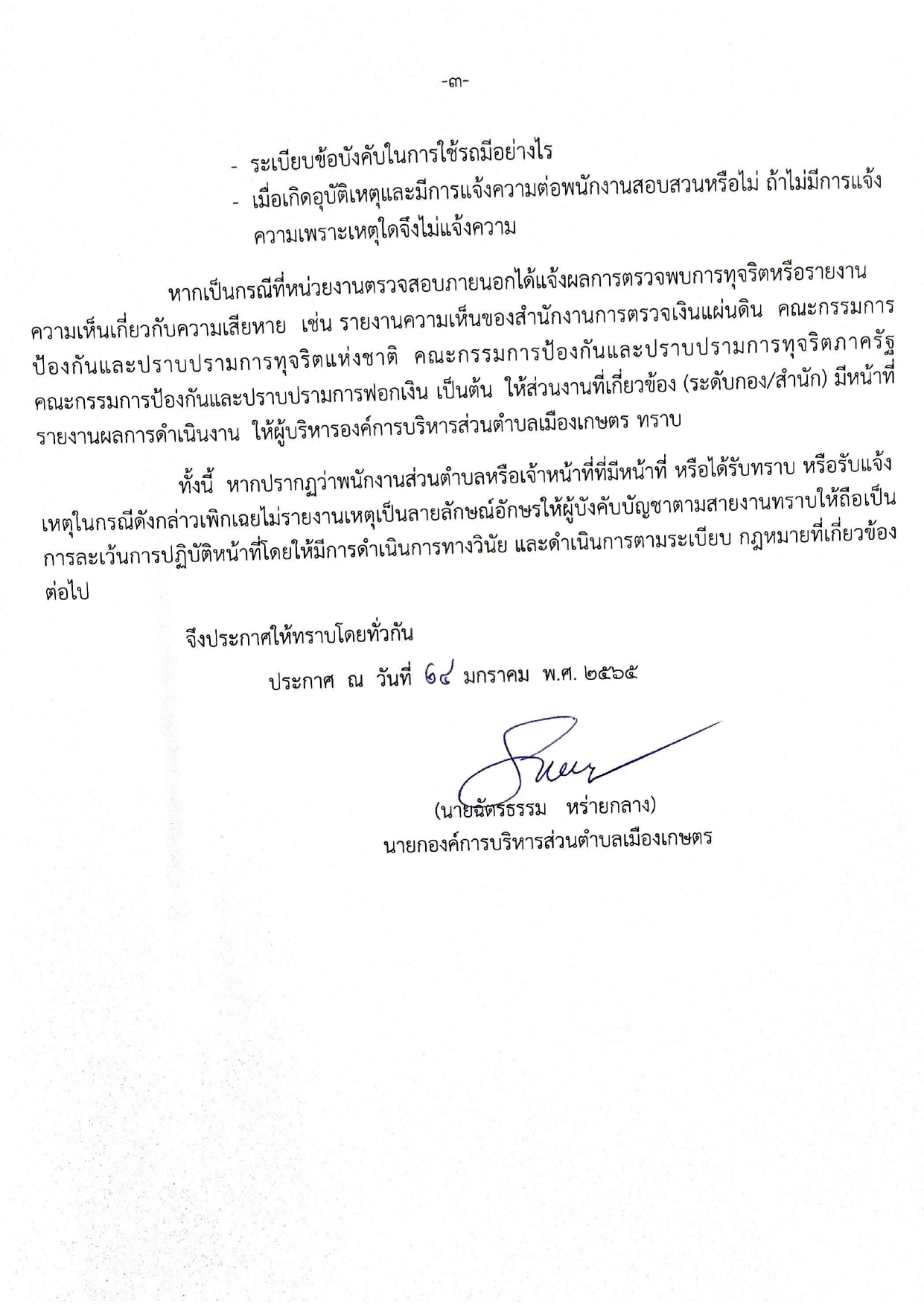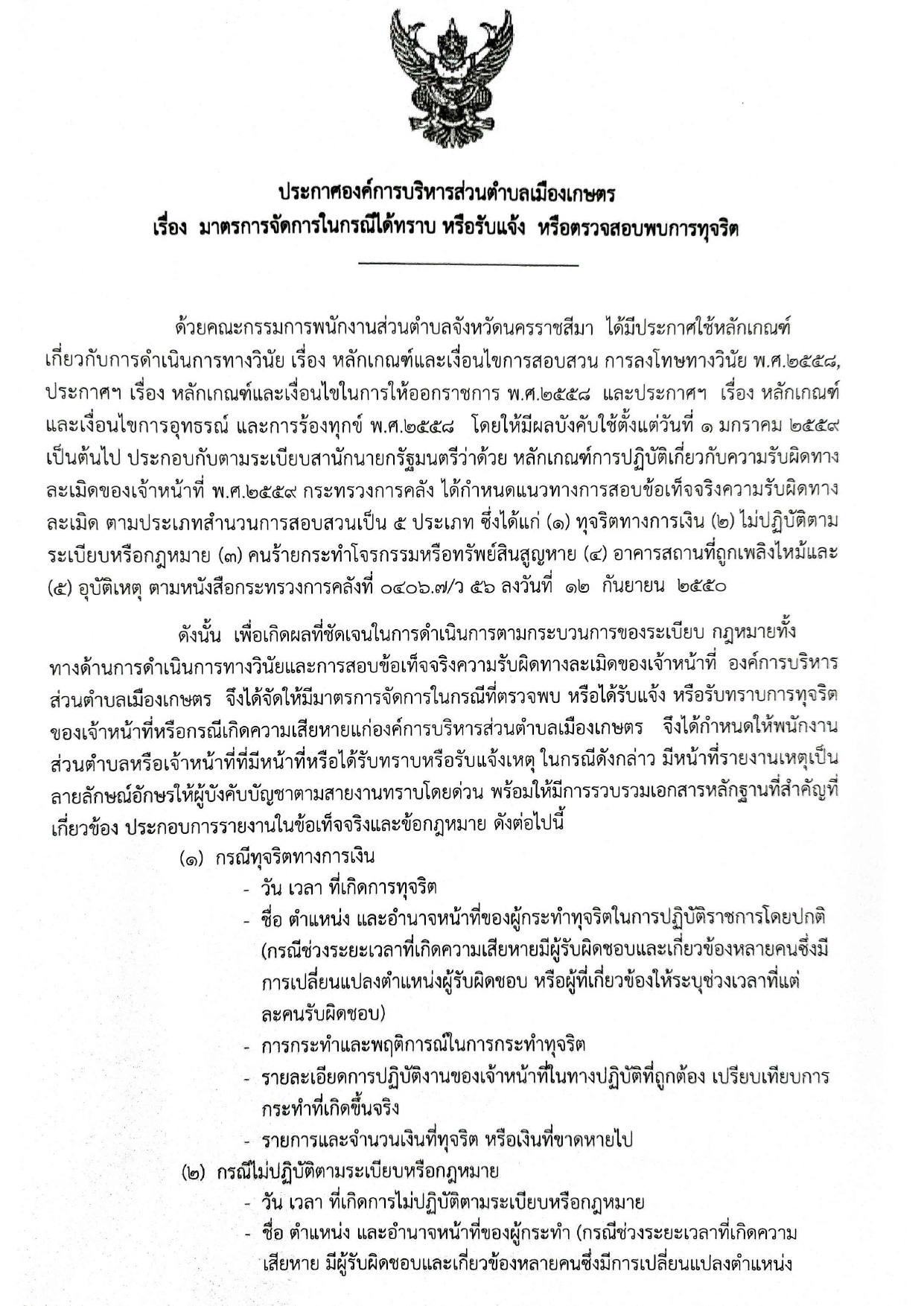 มาตรการจัดการในการกรณี หรือรับแจ้ง หรือตรวจสอบพบการทุจริต
