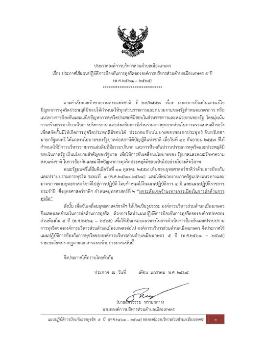 แผนปฏิบัติการป้องกันการทุจริต 5 ปี (2564-2565)