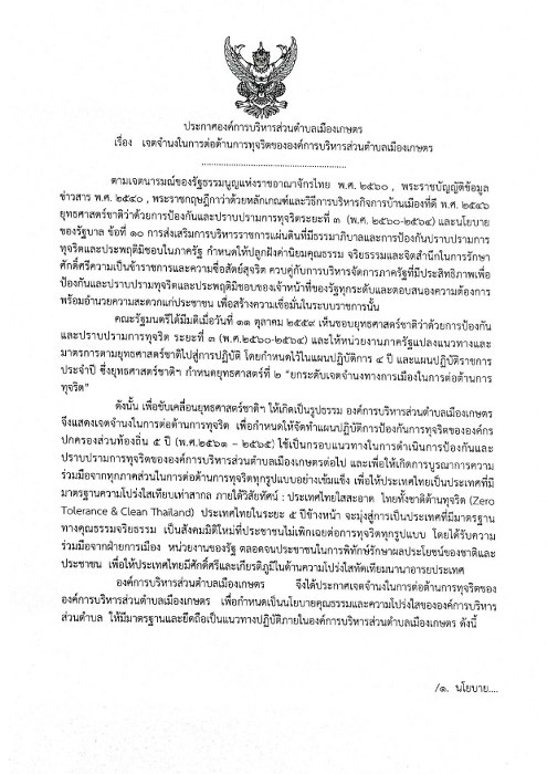ประกาศเจตจำนงค์ในการป้องกันการทุจริตของอบต.เมืองเกษตร (คลิกที่นี่เพื่อเปิดอ่าน)
