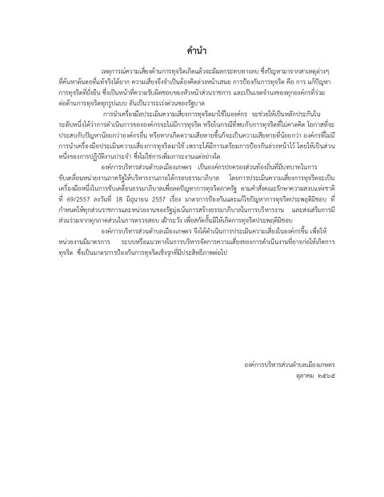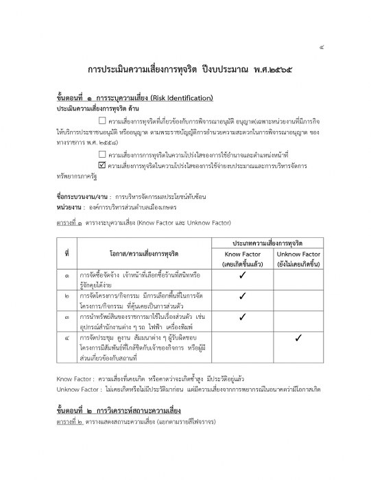 การประเมินความเสี่ยงการทุจริต ประจำปีงบประมาณ 2565
