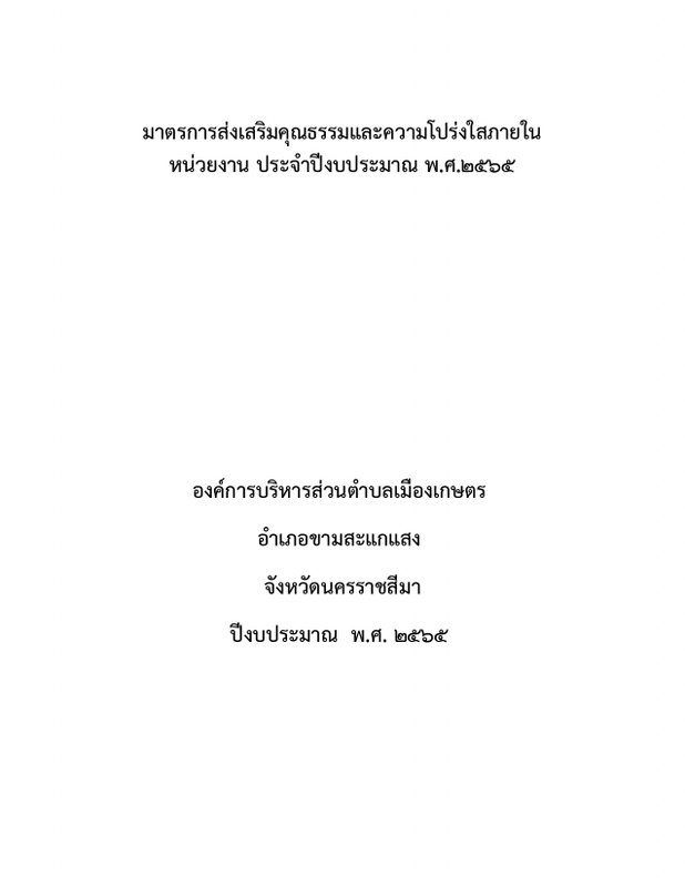 มาตรการส่งเสริมคุณธรรมและความโปร่งใสภายในหน่วยงาน ประจำปีงบประมาณ พ.ศ.2565