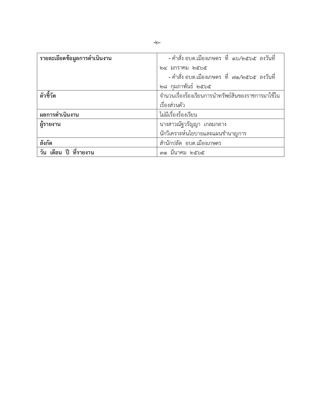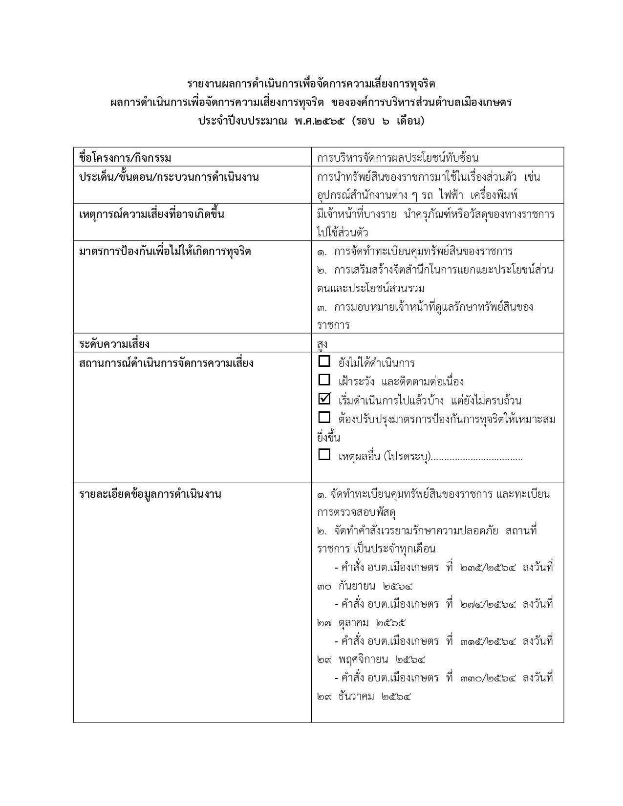 รายงานผลการดำเนินการเพื่อจัดการความเสี่ยงการทุจริต รอบ 6 เดือน ปี 2565