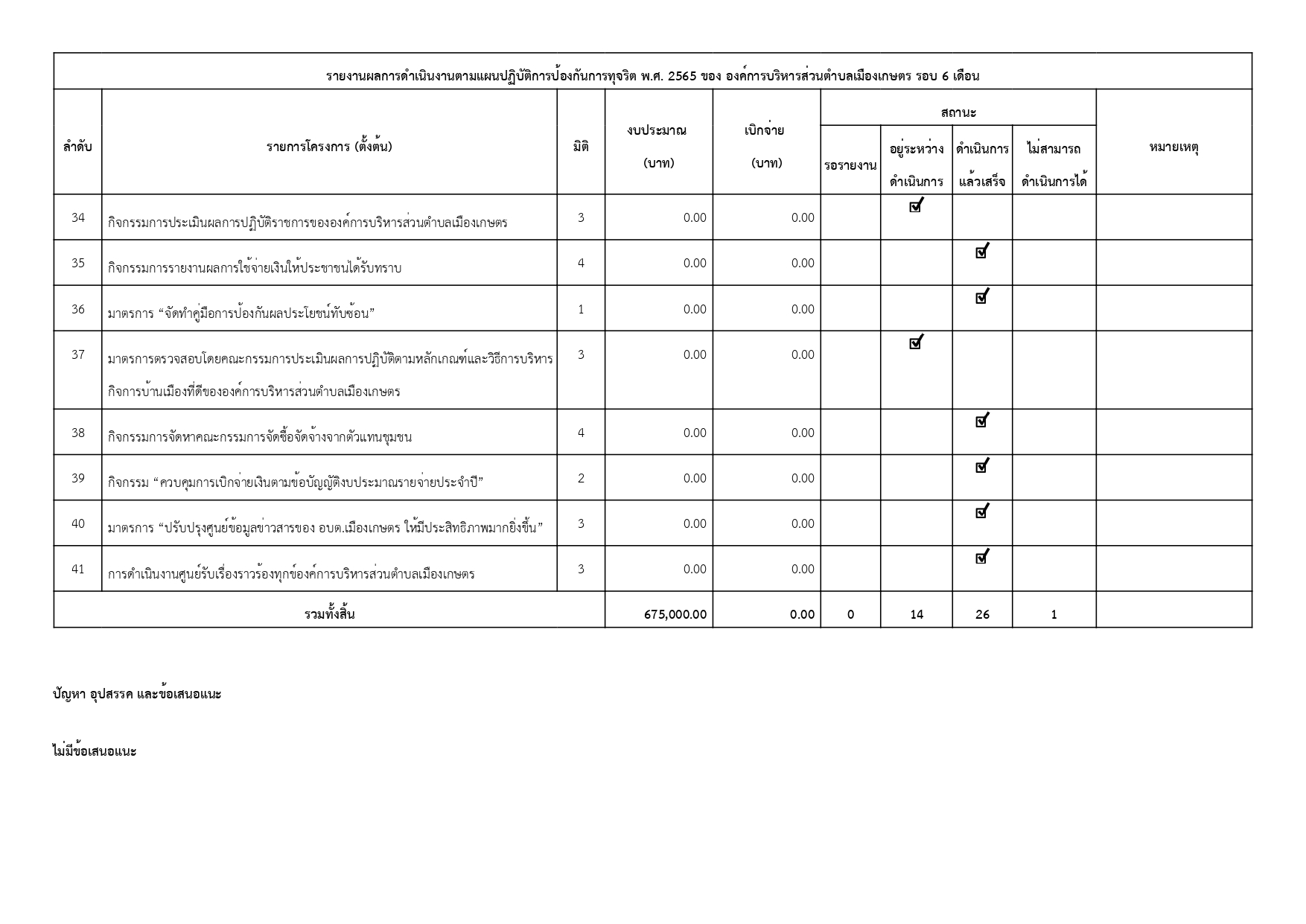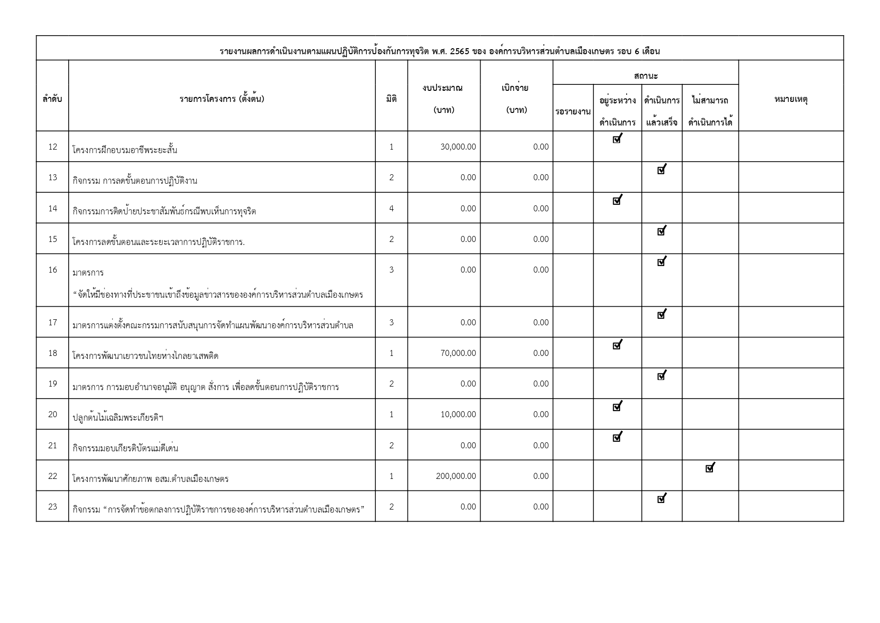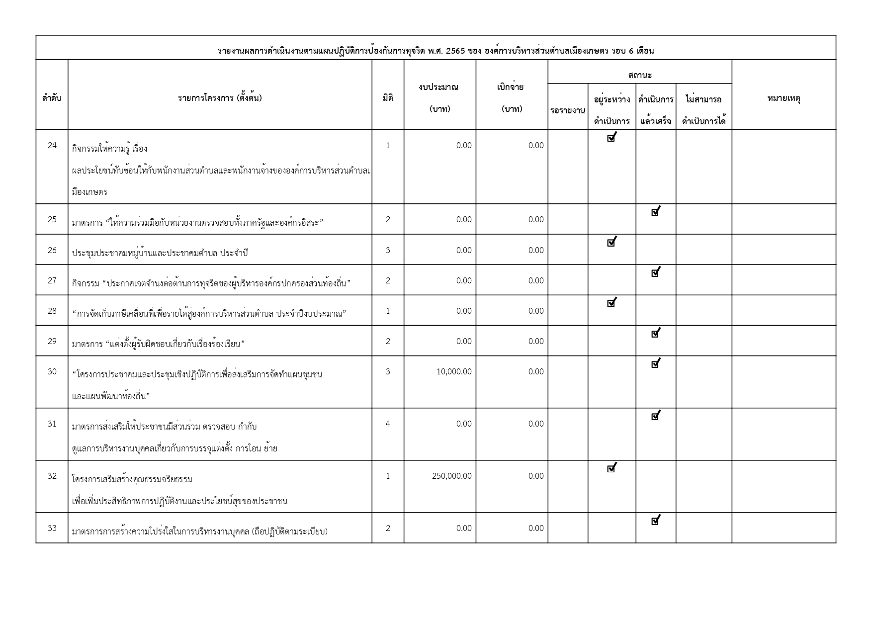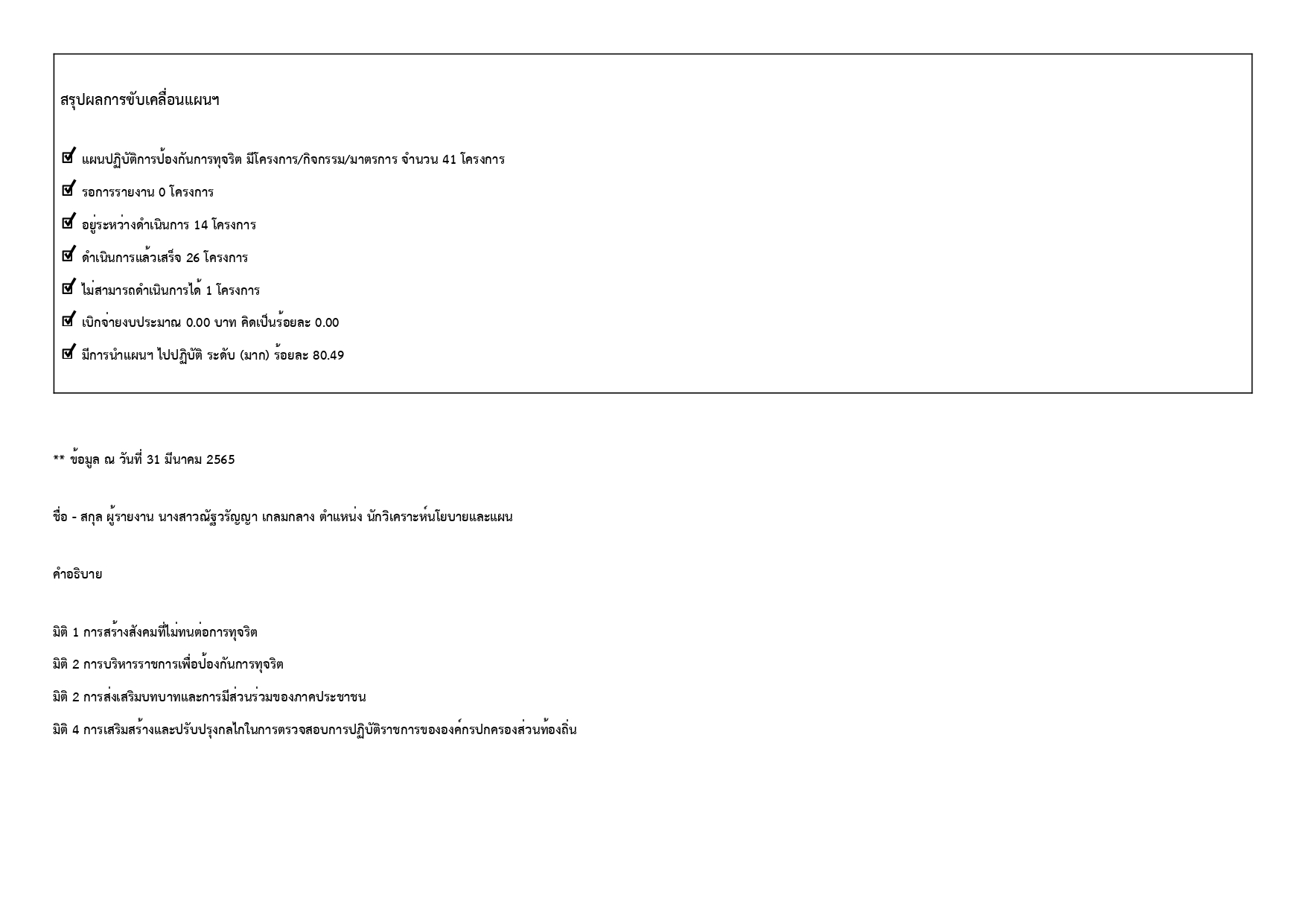 รายงานการกำกับติดตามการดำเนินการป้องกันการทุจริตประจำปี 2565 รอบ 6 เดิอน