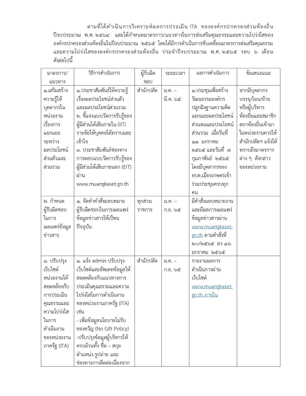 รายงานผลการดำเนินการมาตรการส่งเสริมคุณธรรมและความโปร่งใส ประจำปี 2565