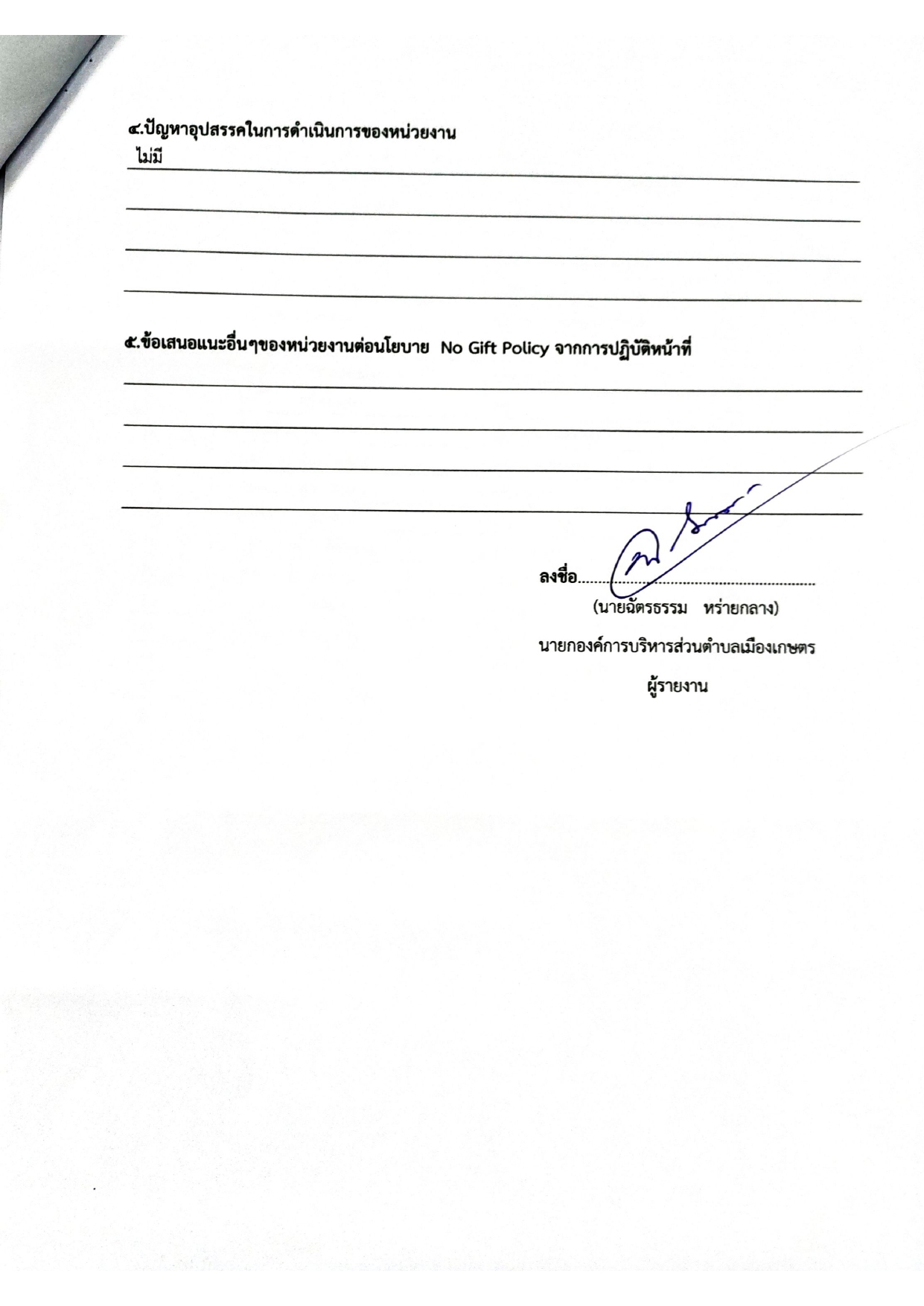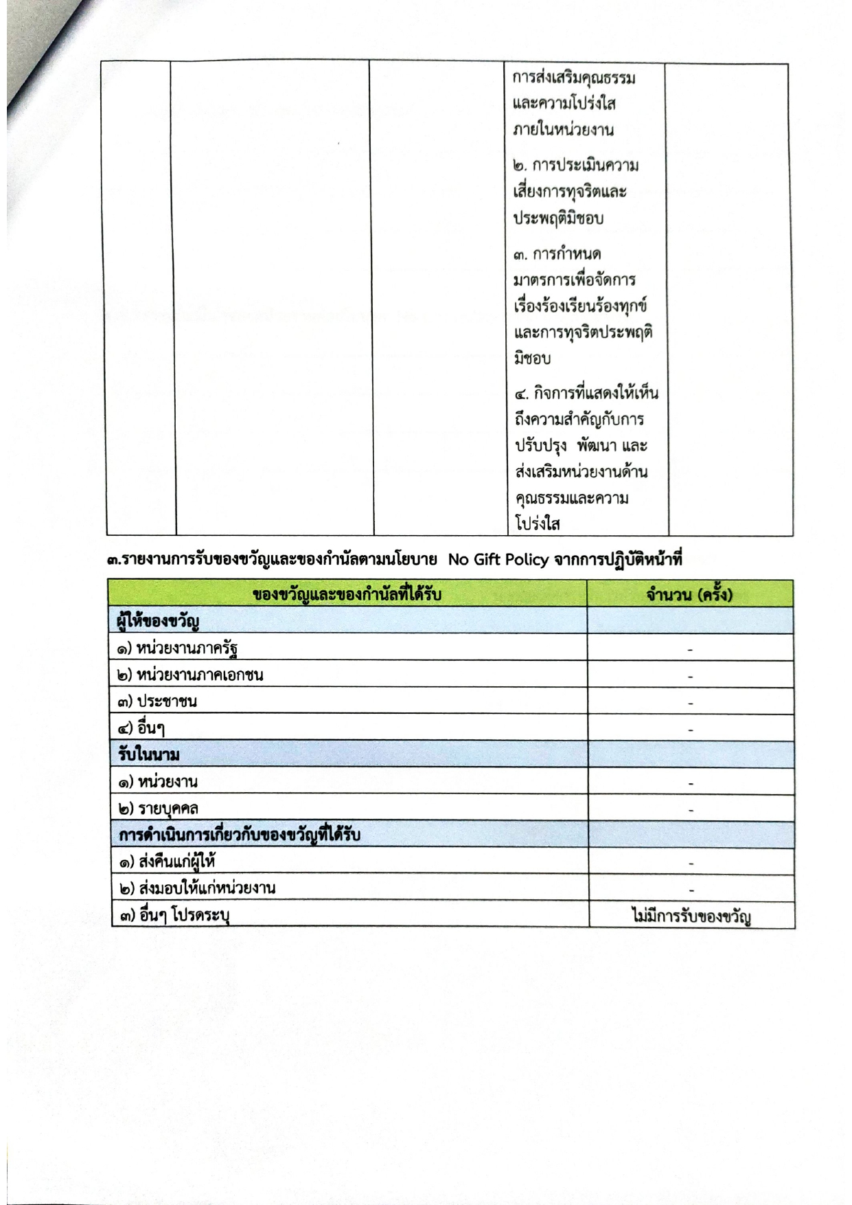 แบบสรุปรายงานตามนโยบาย No Gife Policy รอบ 6 เดือน (1 ต.ค. 64- 31 มี.ค. 65)