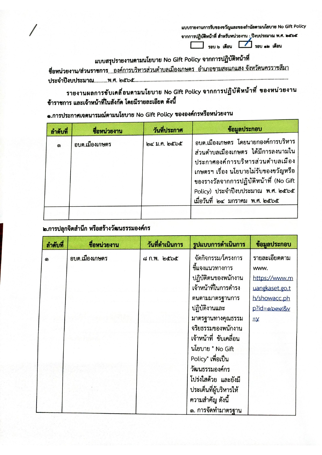 สรุปรายงานผลการดำเนินงาน รอบ 12 เดือน ประจำปี 2565