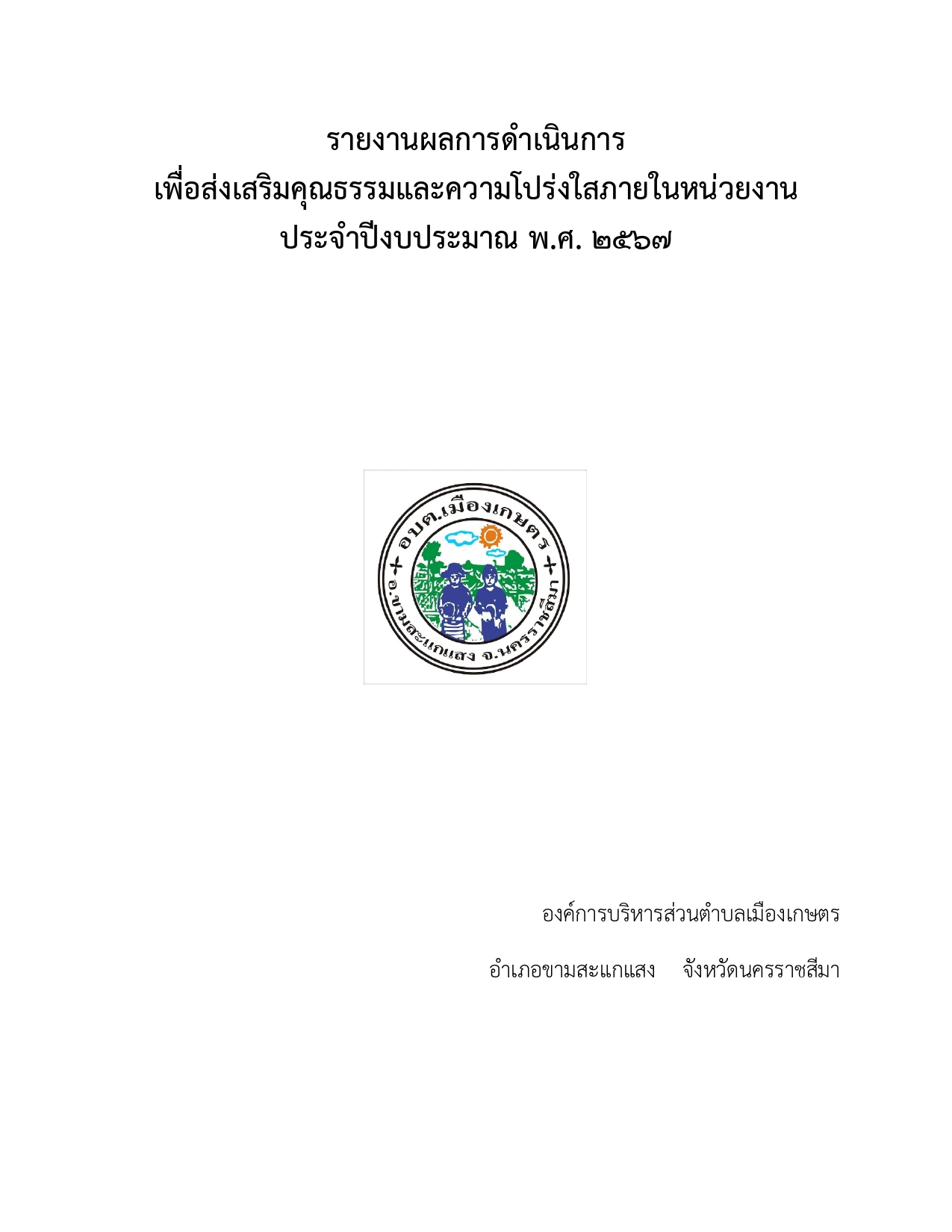 รายงานผลการดำเนินการ เพื่อส่งเสริมคุณธรรมและความโปร่งใสภายในหน่วยงาน ประจำปีงบประมาณ พ.ศ. 2567
