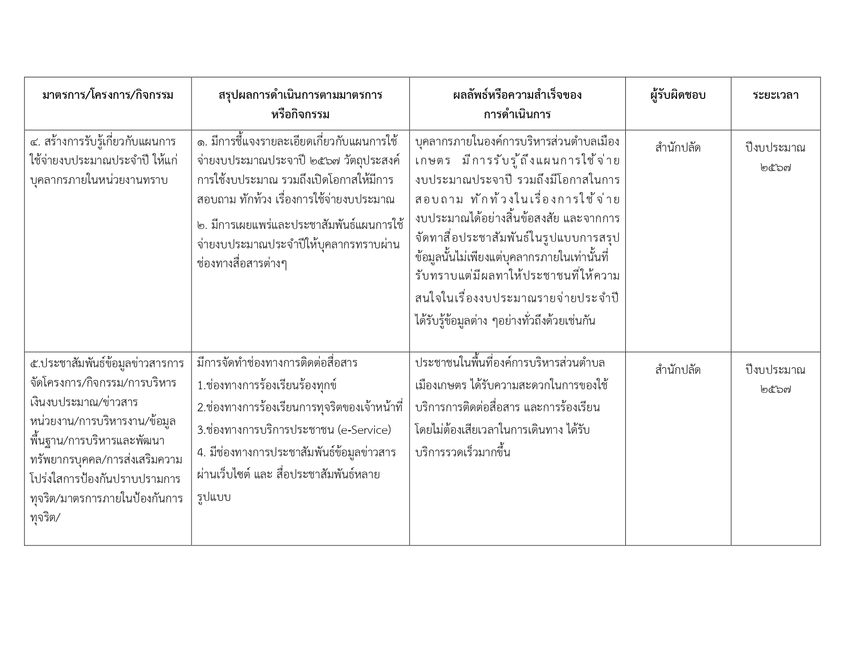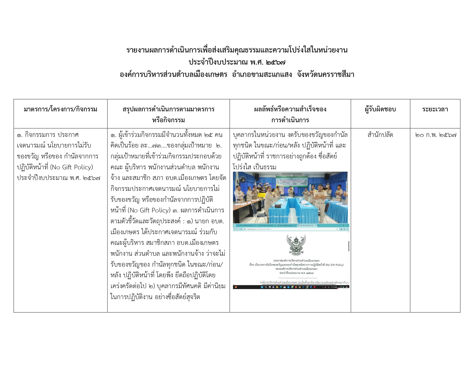 รายงานผลการดำเนินการ เพื่อส่งเสริมคุณธรรมและความโปร่งใสภายในหน่วยงาน ปี 2567