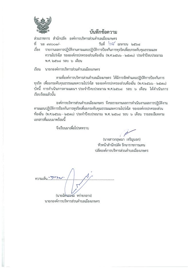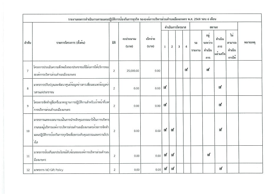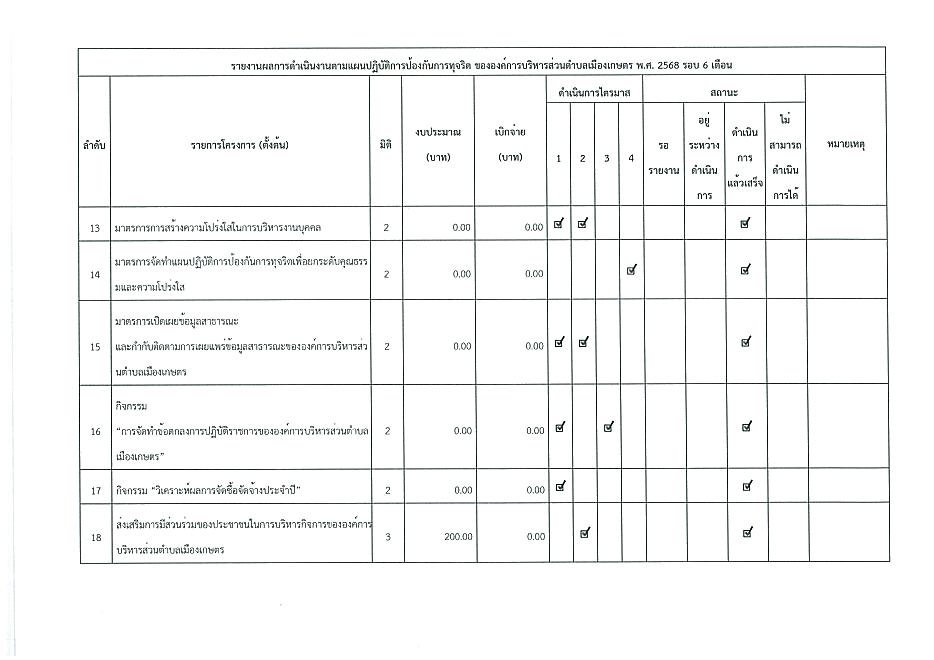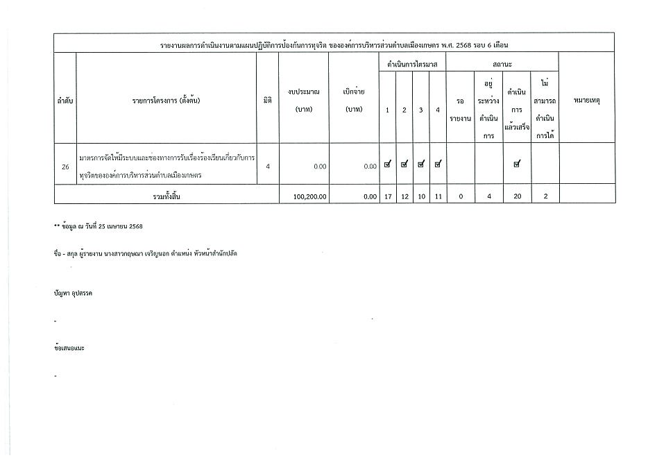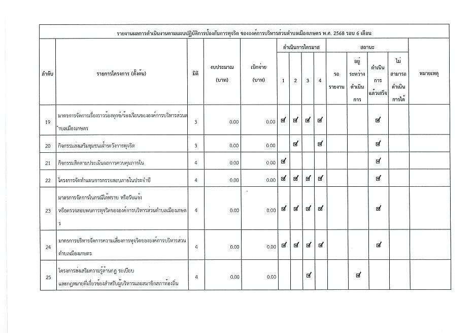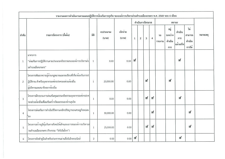 รายงานผลการดำเนินงานตามแผนปฏิบัติการป้องกันการทุจริต พ.ศ.2568 รอบ 6 เดือน