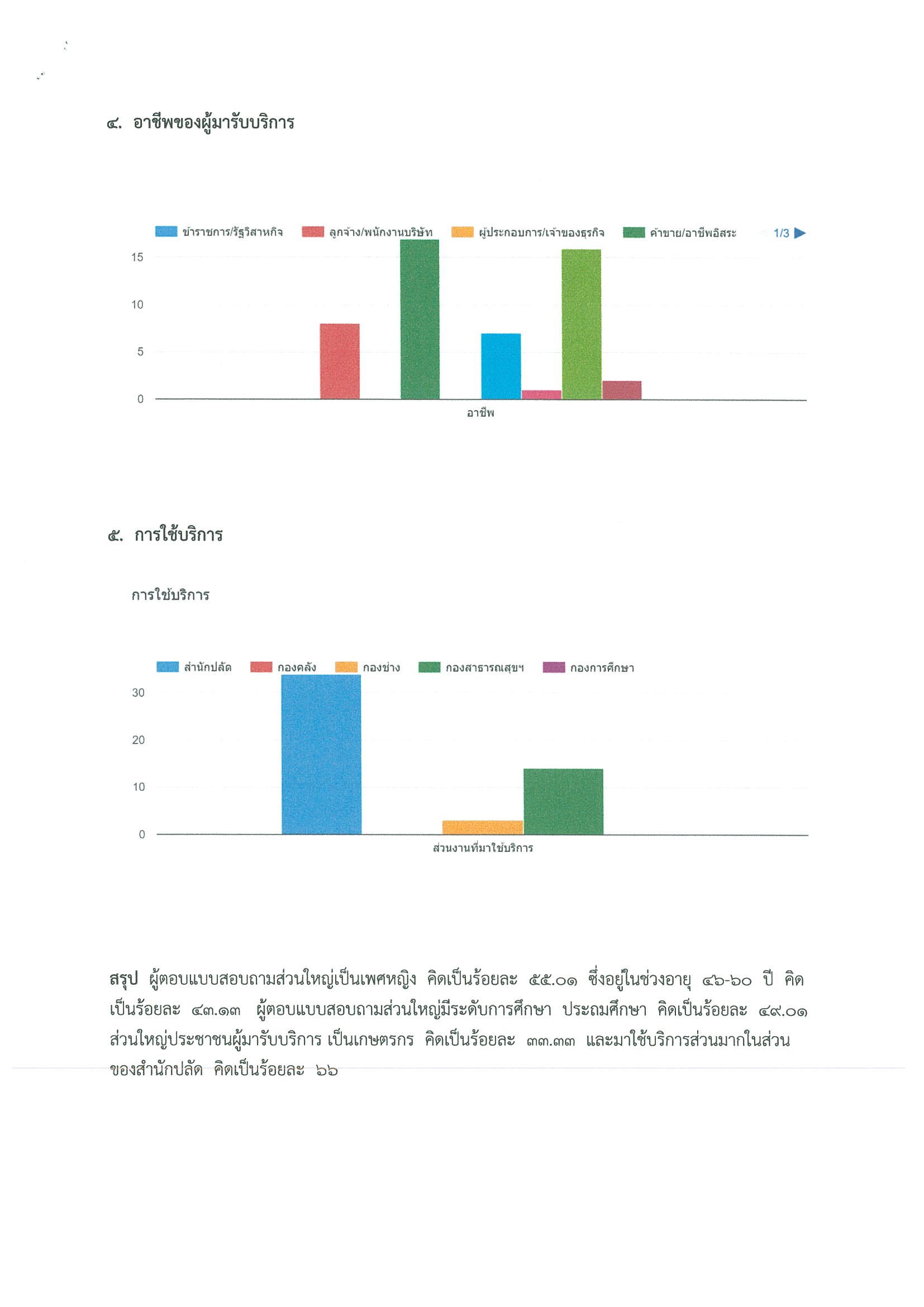 รายงานผลสรุปแบบสอบถามความพึงพอใจการให้บริการ ประจำปี 2565