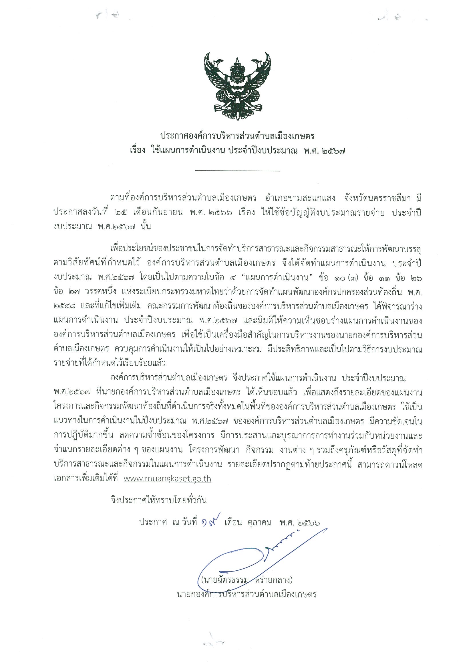 ใช้แผนการดำเนินงาน ประจำปีงบประมาณ พ.ศ. 2567
