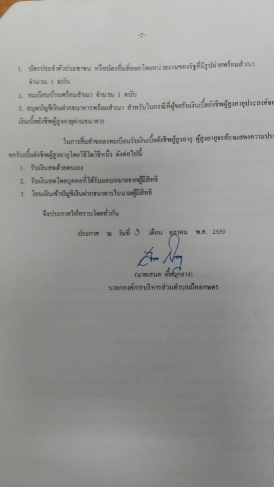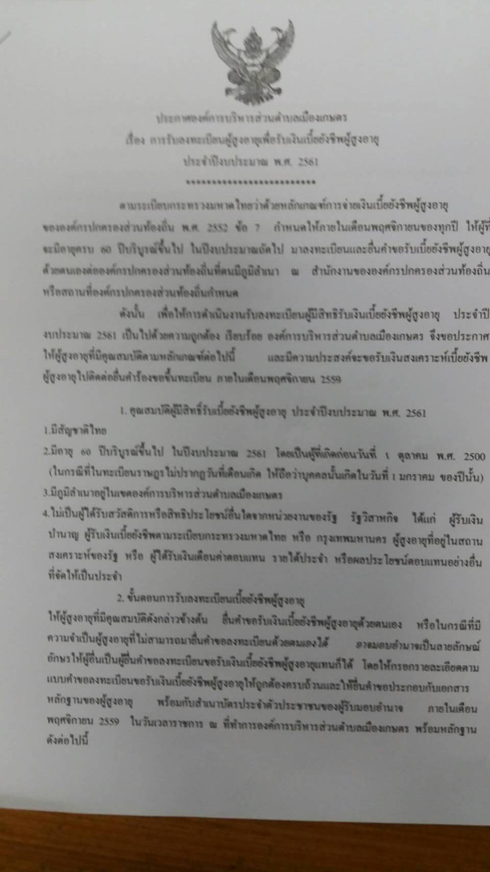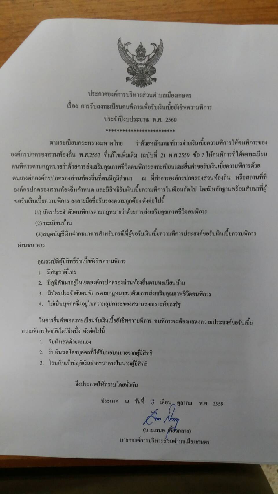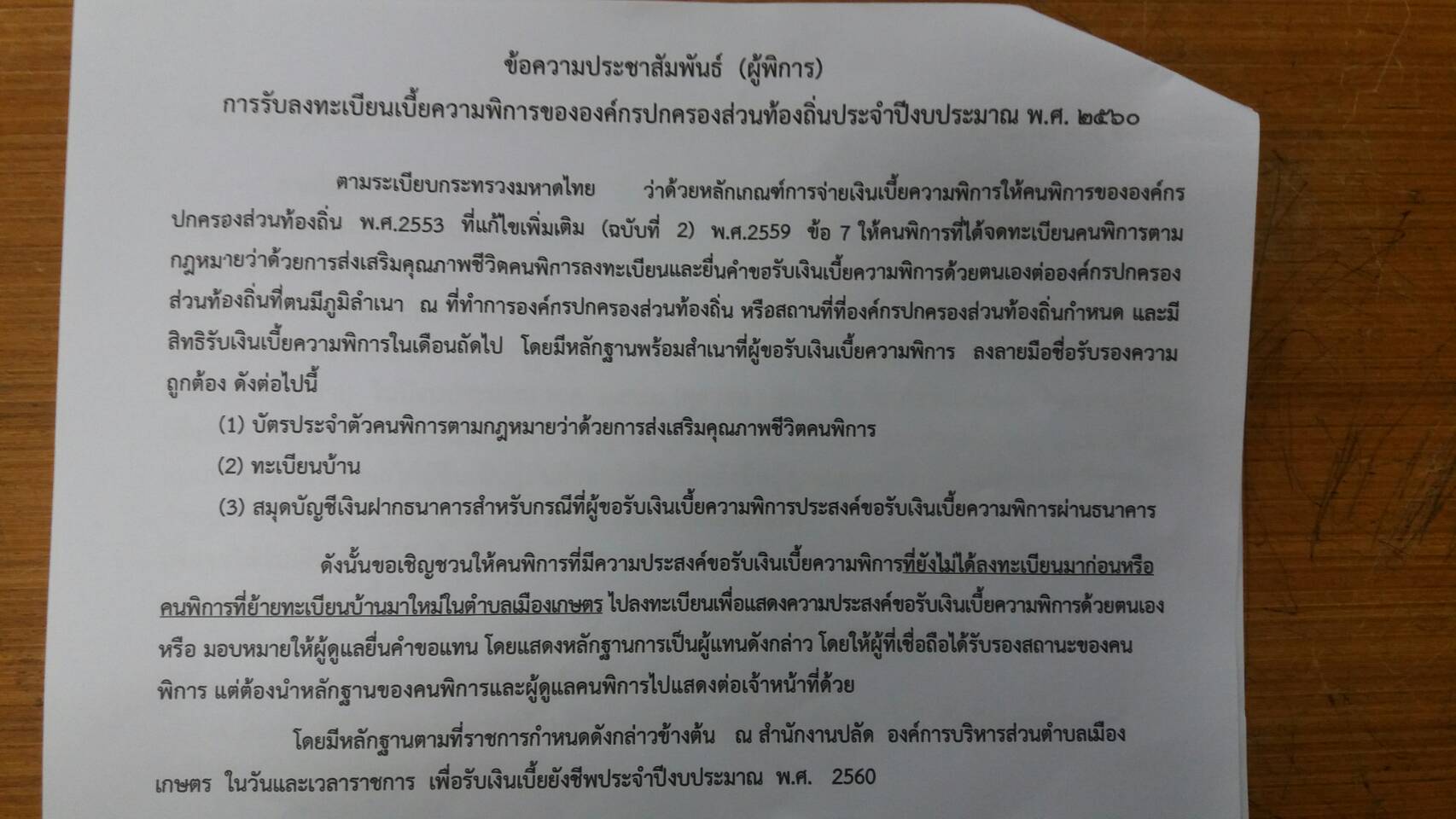 ประชาสัมพันธ์การรับขึ้นทะเบียนผู้สูงอายุและผู้พิการเพื่อรับเงินเบี้ยยังชีพ 2560