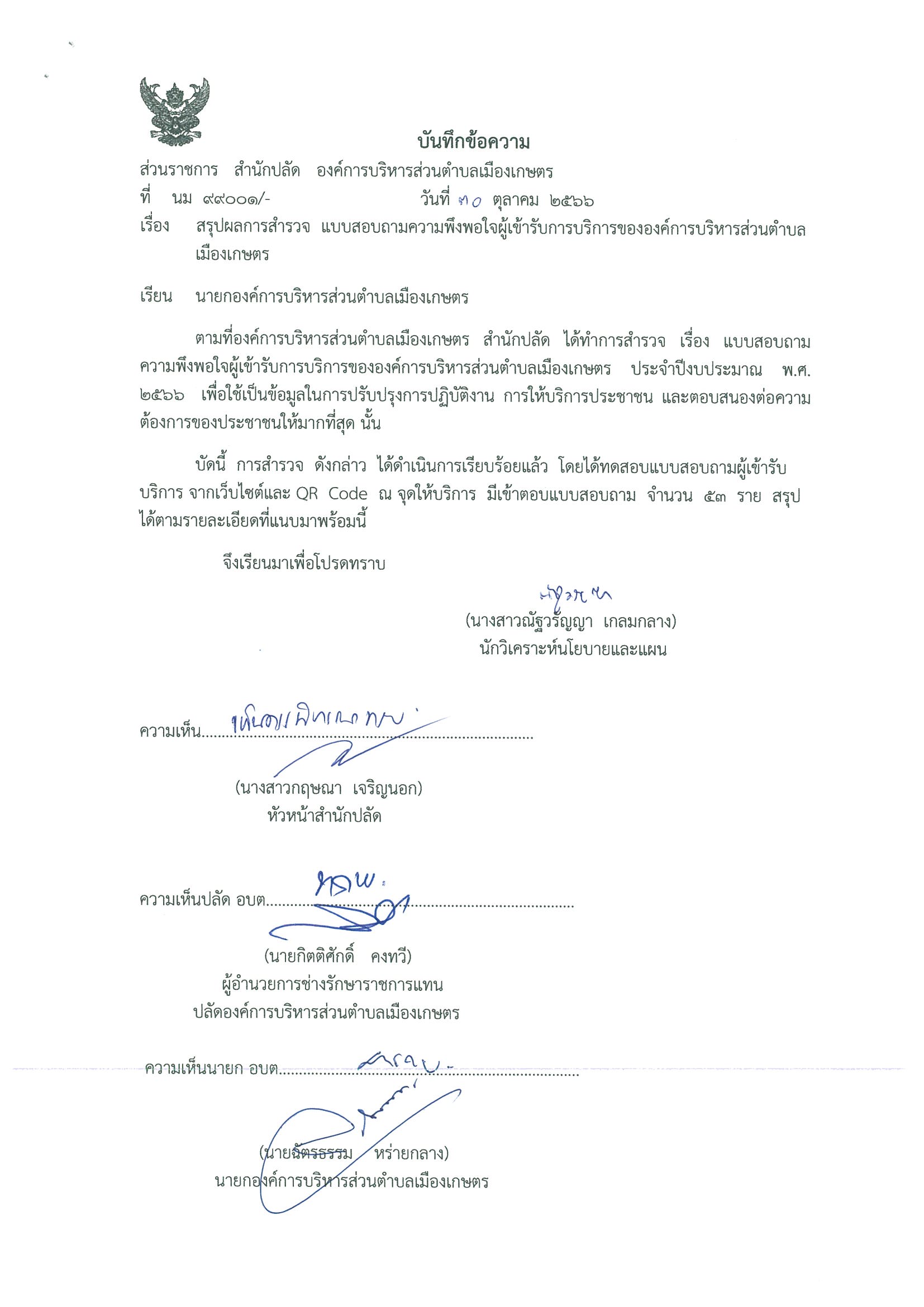 รายงานผลสรุปแบบสอบถามความพึงพอใจการให้บริการ ประจำปี 2566