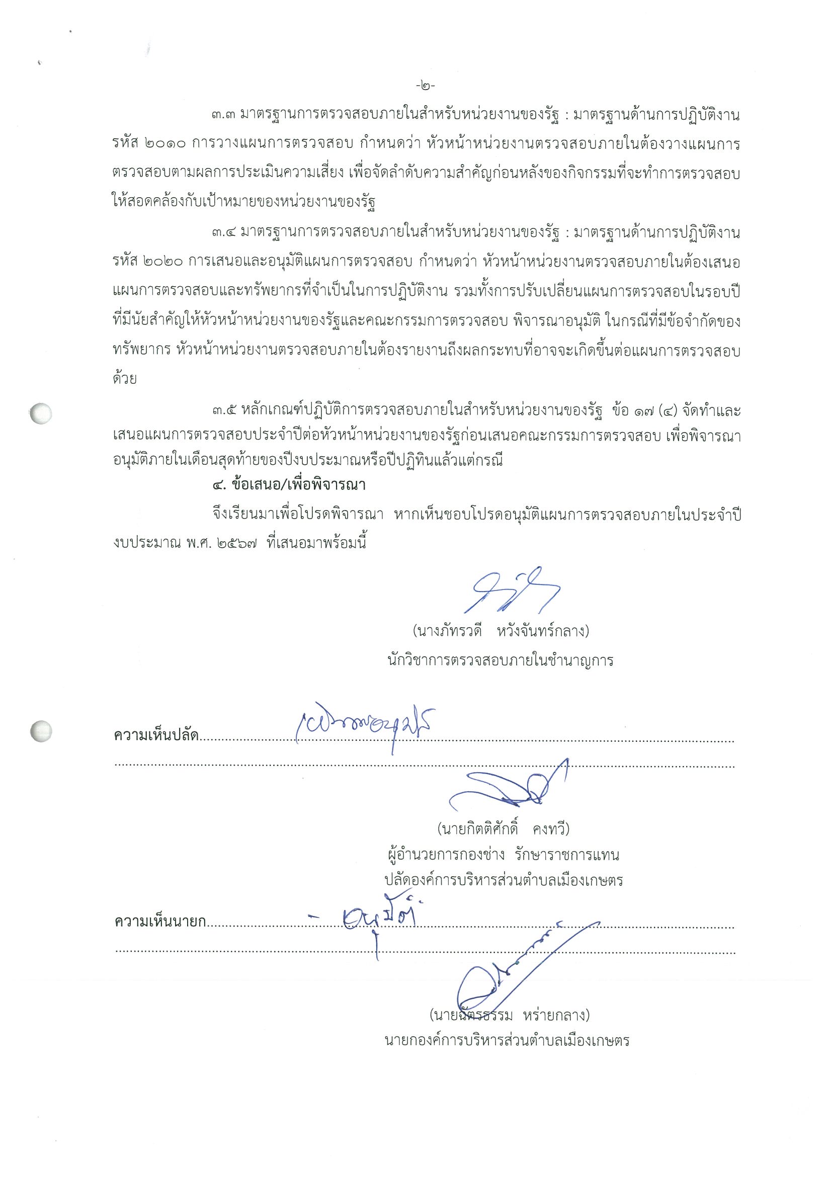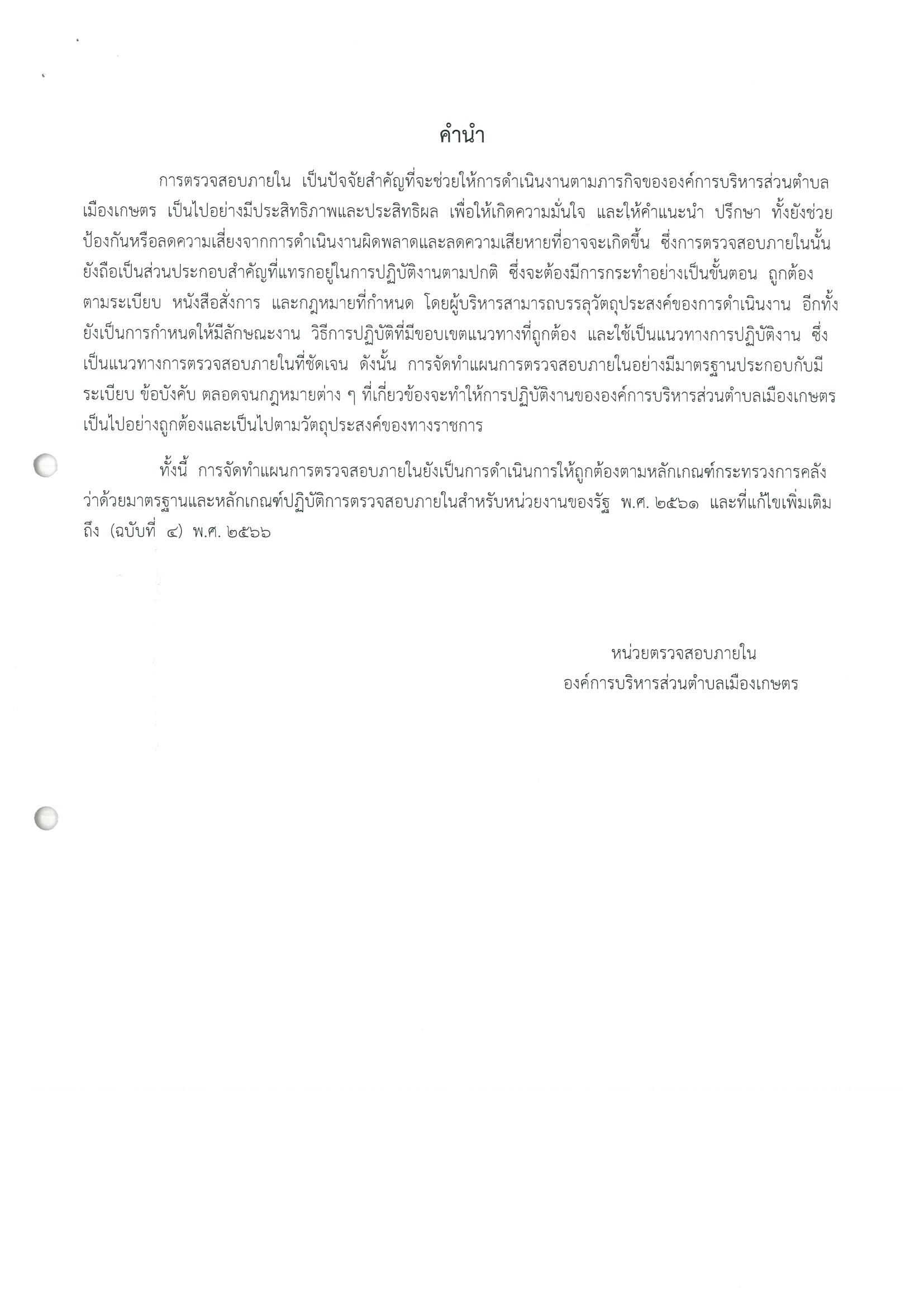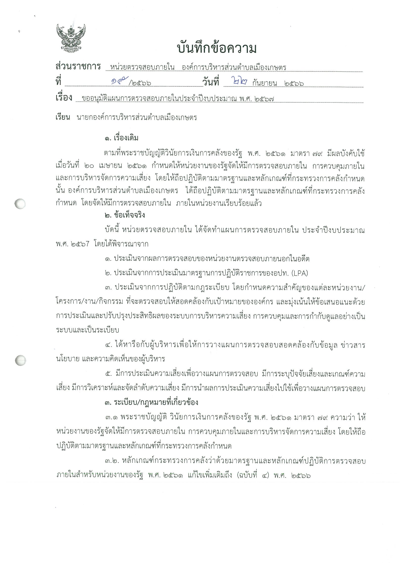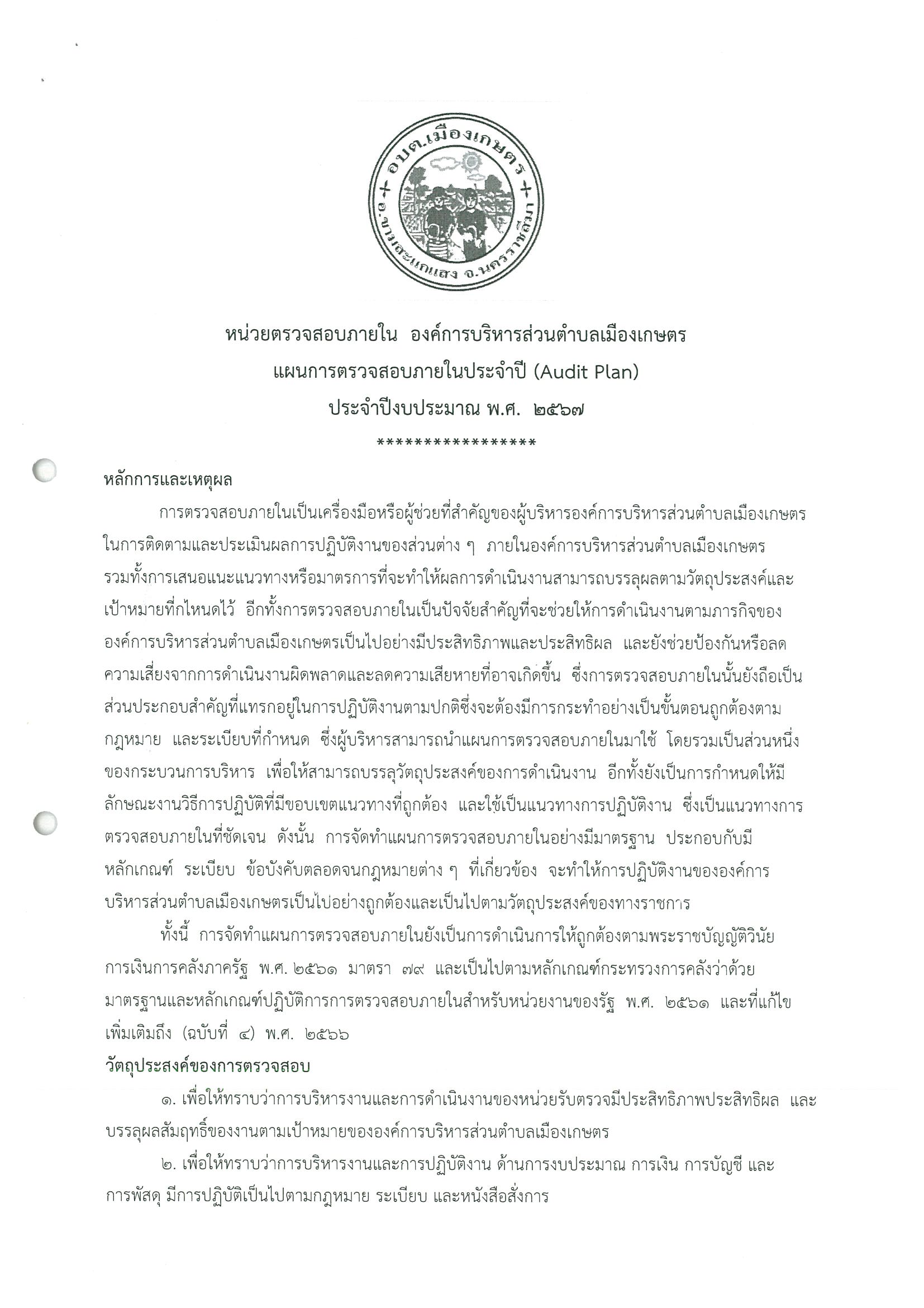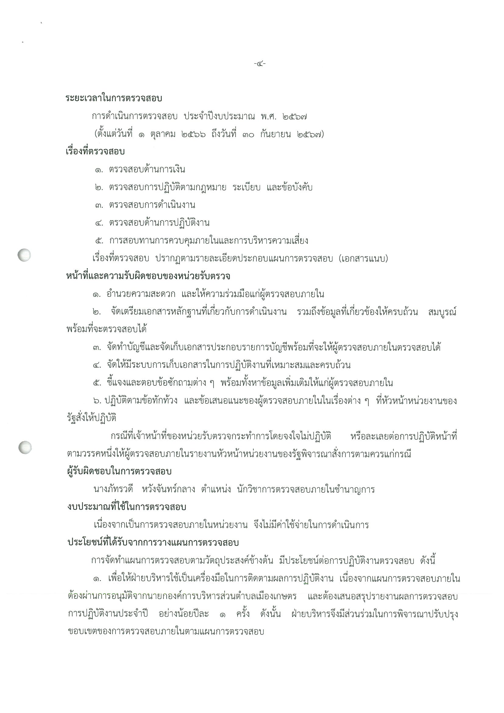 แผนการตรวจสอบภายใน ประจำปี 2567