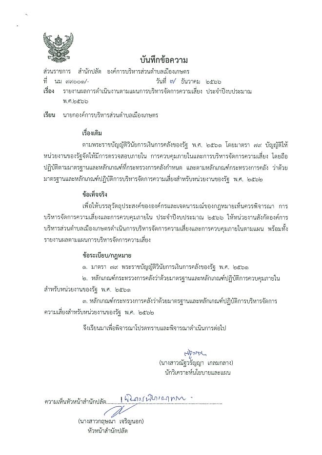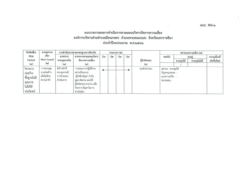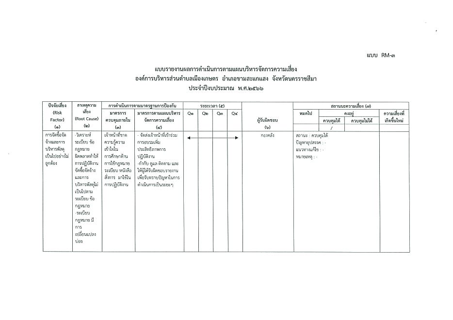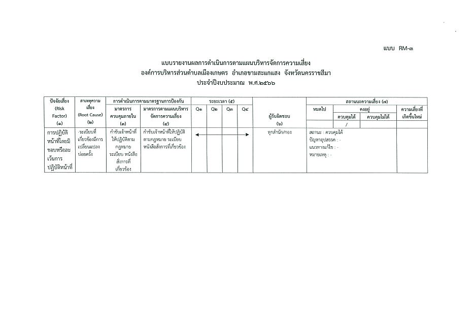 รายงานผลการดำเนินงานตามแผนการบริหารความเสี่ยง ปี 2566