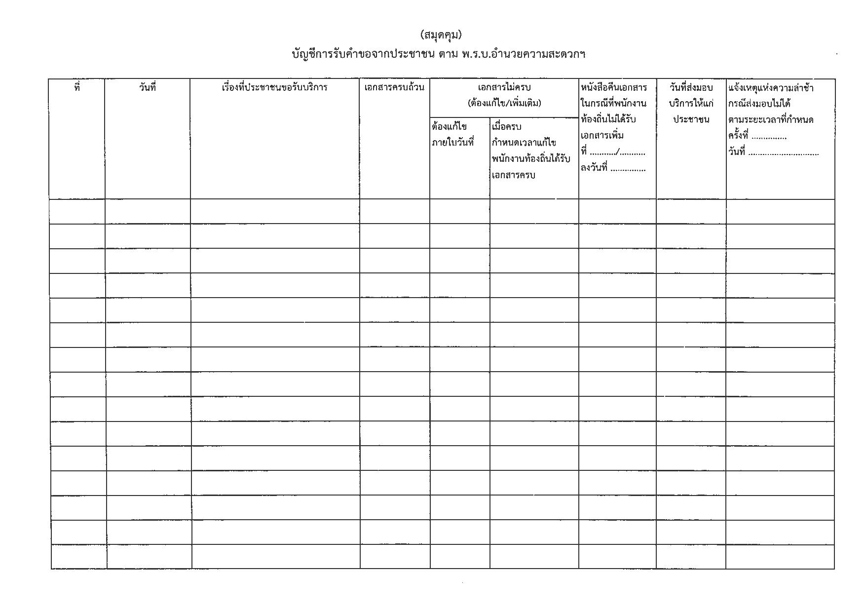 บันชีการรับคำขอจากประชาชน ตามพรบ.อำนวยความสะดวก