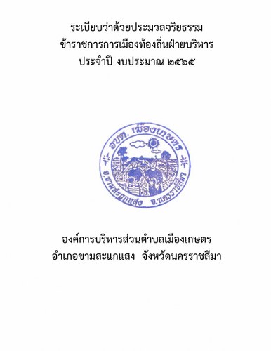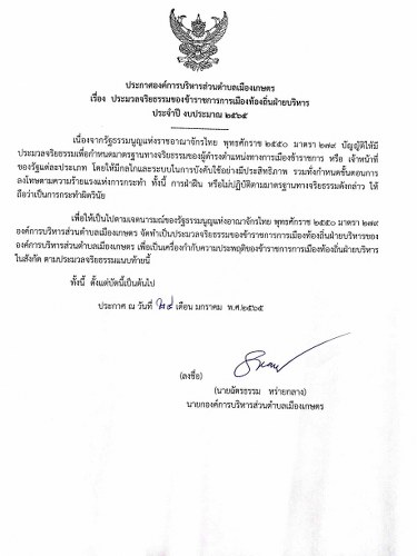 ระเบียบว่าด้วยประมวลจริยธรรม ข้าราชการการเมืองท้องถิ่นฝ่ายบริหาร ประจำปี 2565