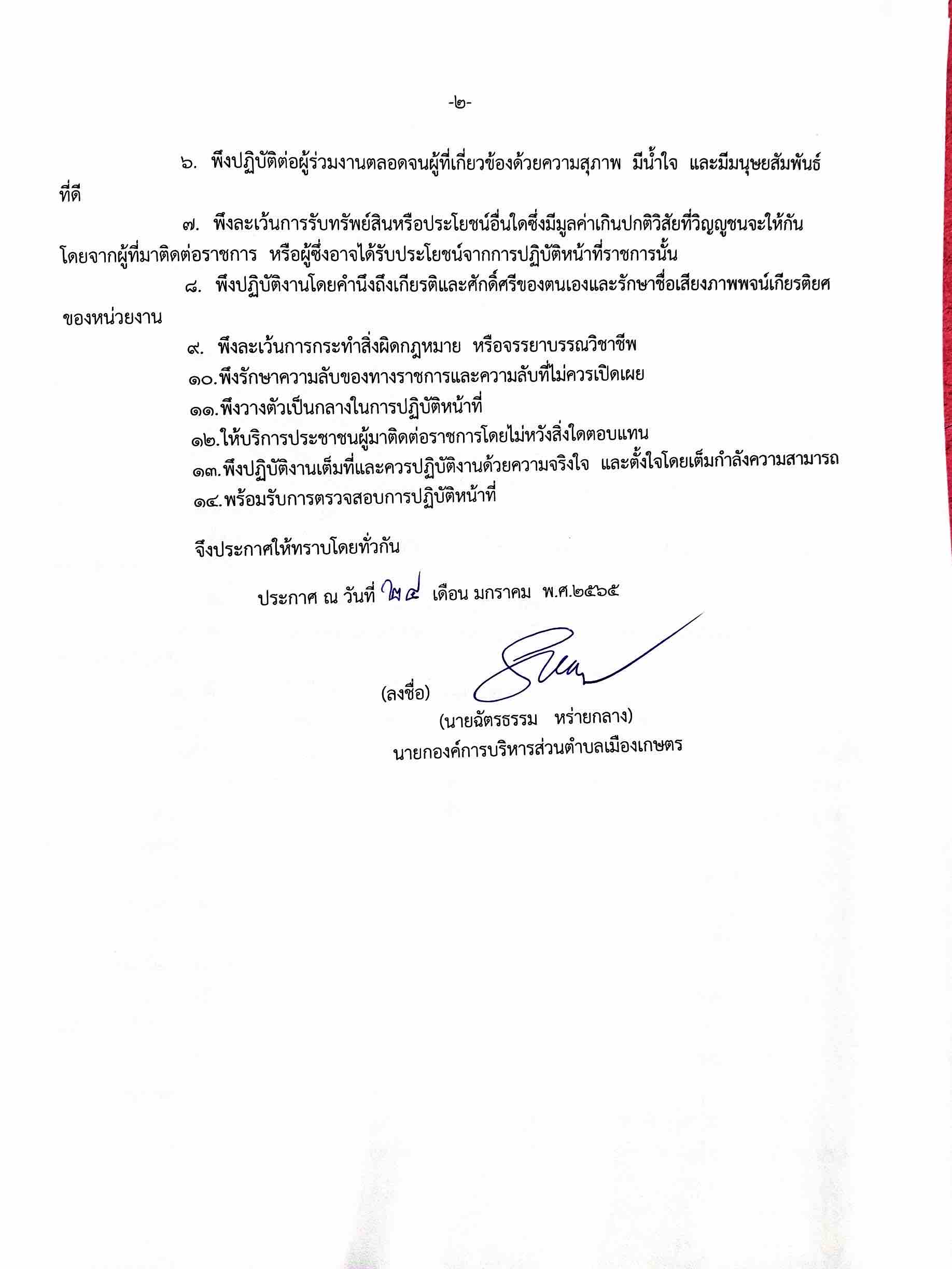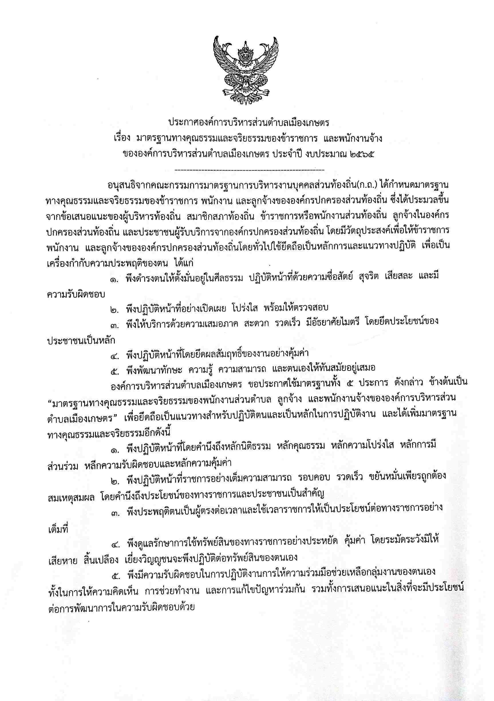 มาตรฐานทางคุณธรรมจริยธรรมของข้าราชการและพนักงานจ้างปี 2565