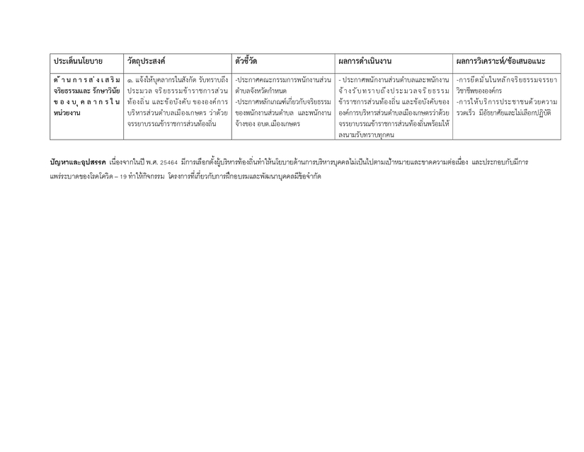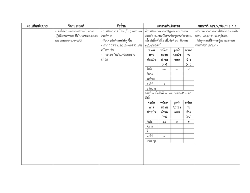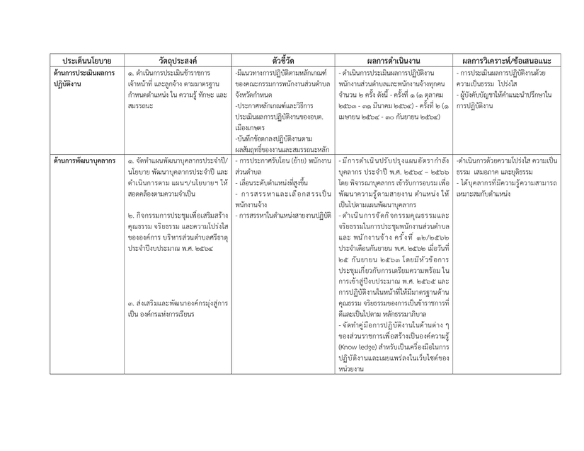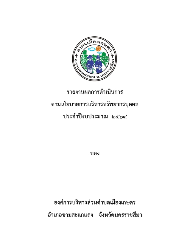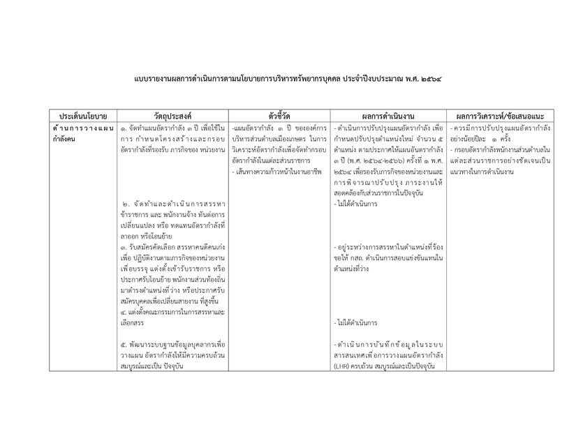 รายงานผลการดำเนินการตามนโยบายการบริหารทรัพยากรบุคคล ประจำปีงบประมาณ 2564
