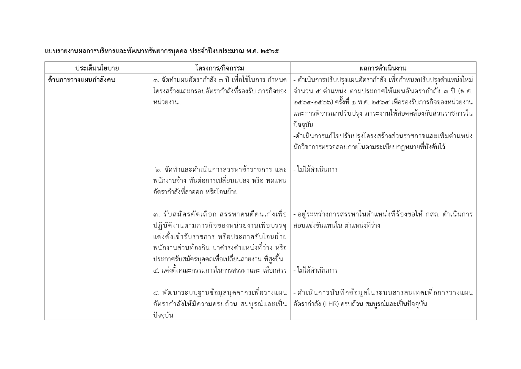 รายงานผลการบริหารและพัฒนาทรัพยากรบุคคล ประจำปีงบประมาณ พ.ศ. 2565