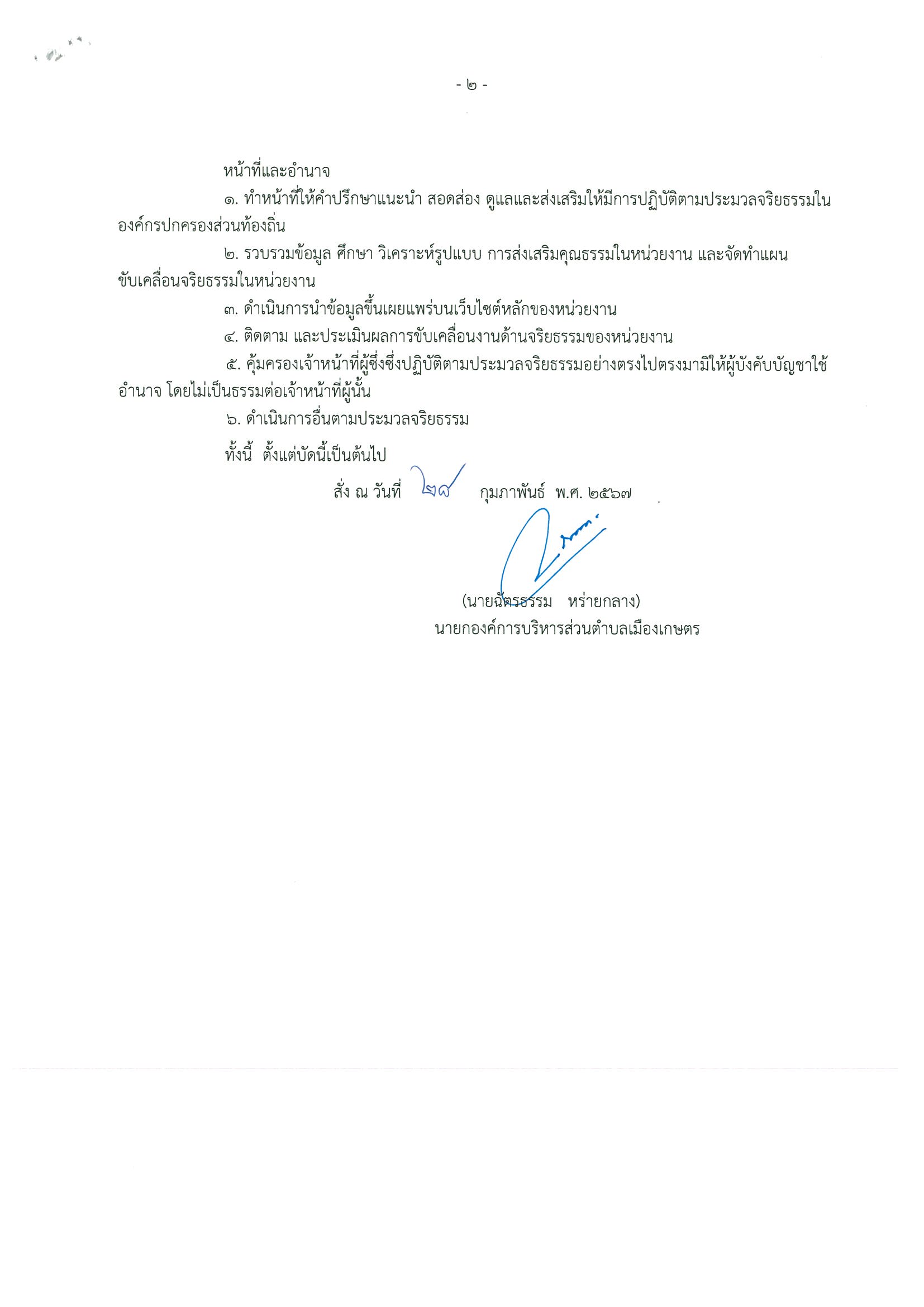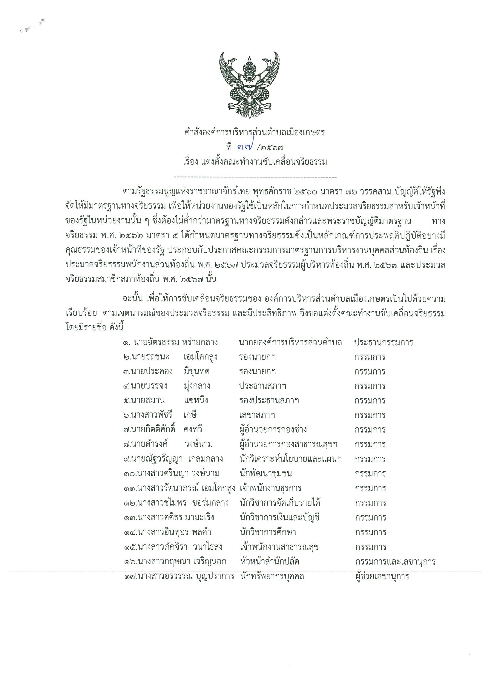 คำสั่งแต่งตั้งคณะทำงานขับเคลื่อนจริยธรรม