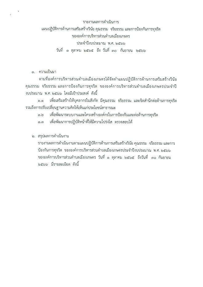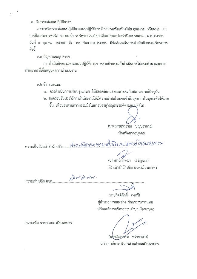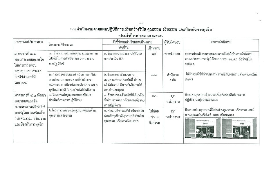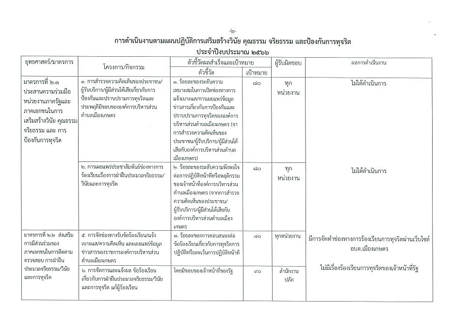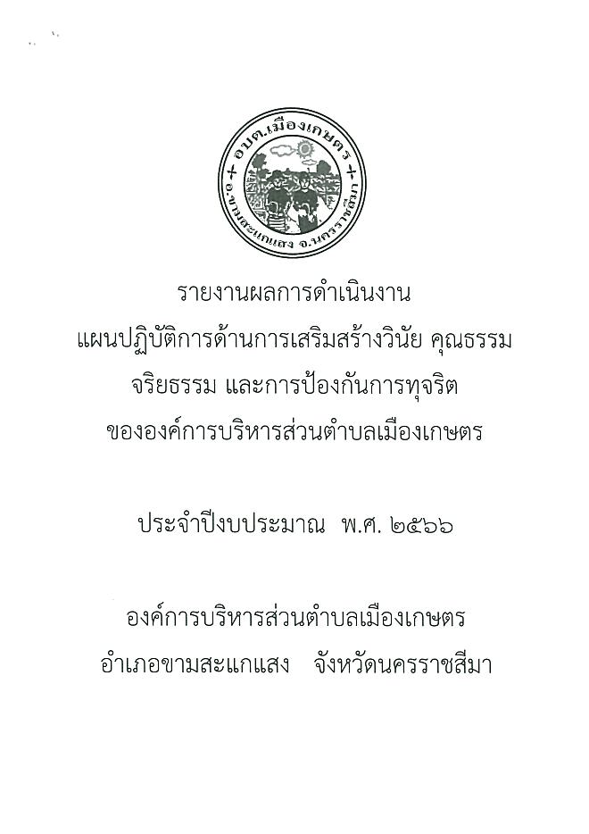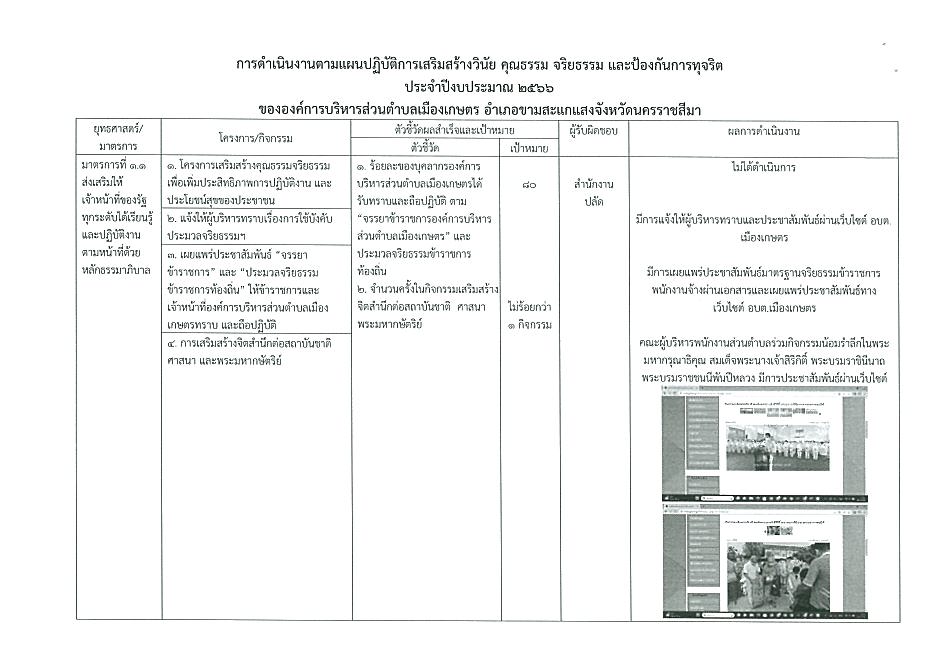 รายงานแผนปฏิบัติการด้านการเสริมสร้างวินัยคุณธรรมจริยธรรมและการป้องกันการทุจริต