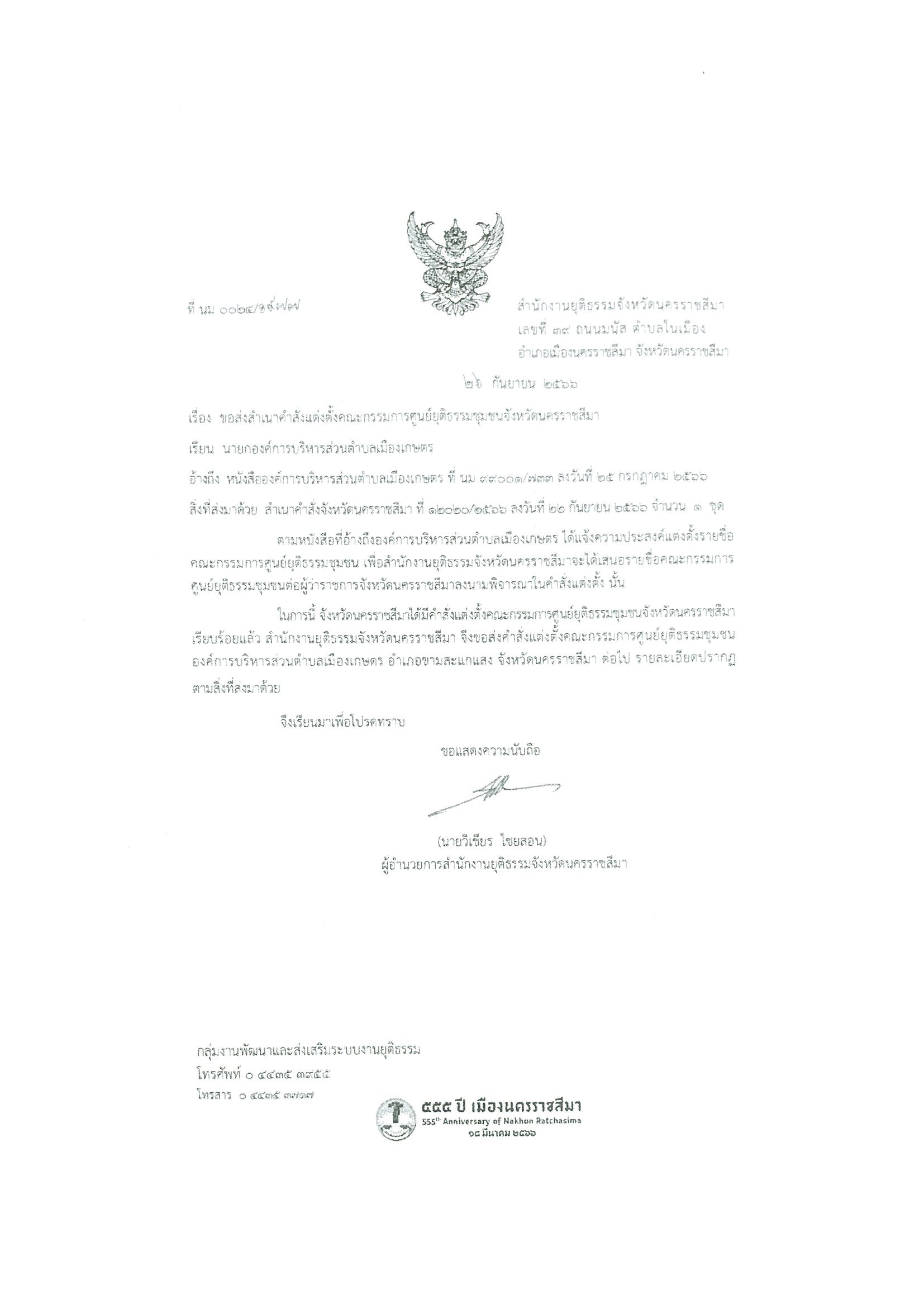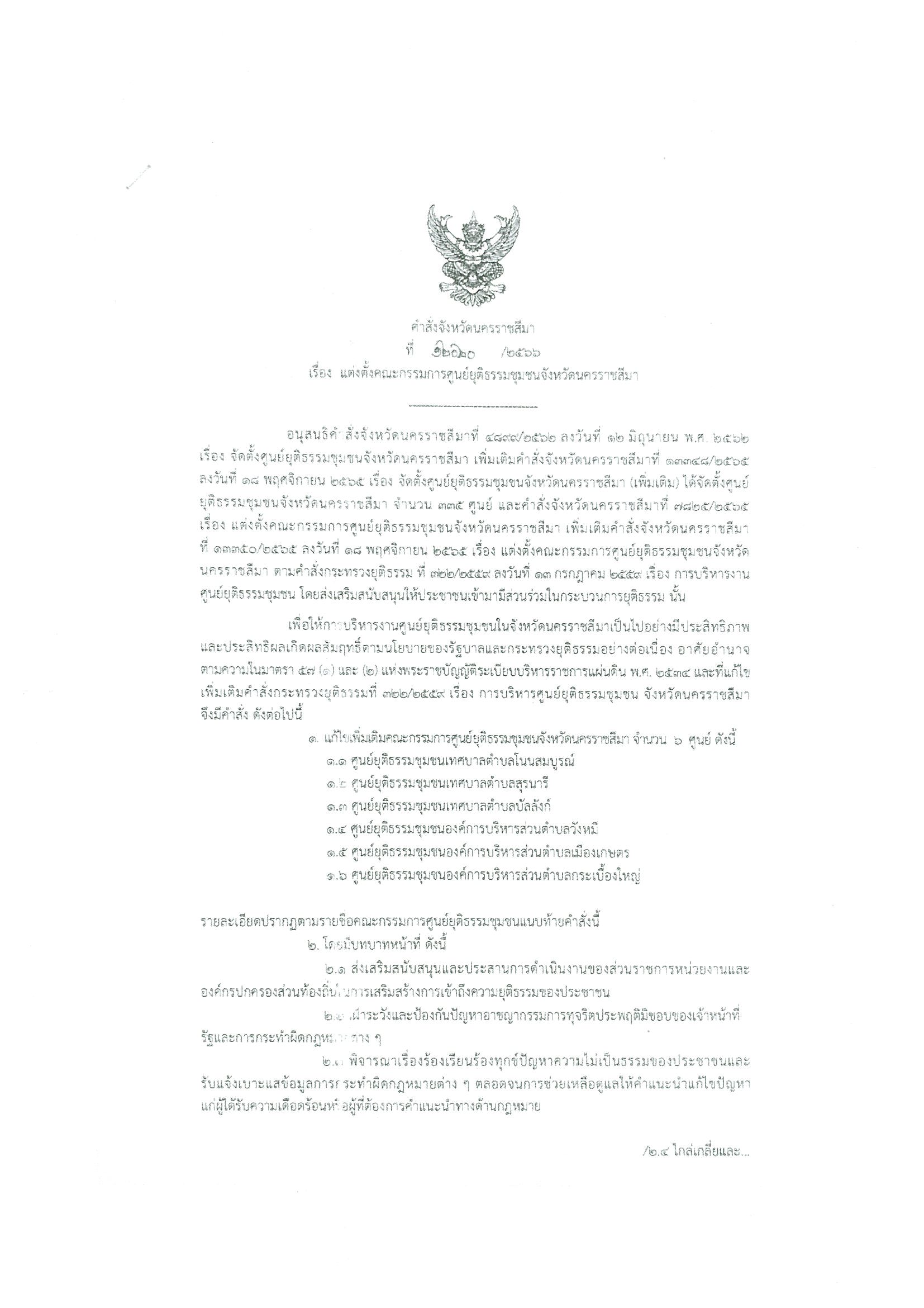 แต่งตั้งคณะกรรมการศูนย์ยุติธรรมชุมชนจังหวัดนครราชสีมา