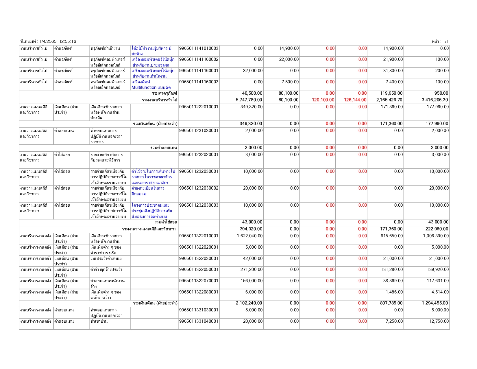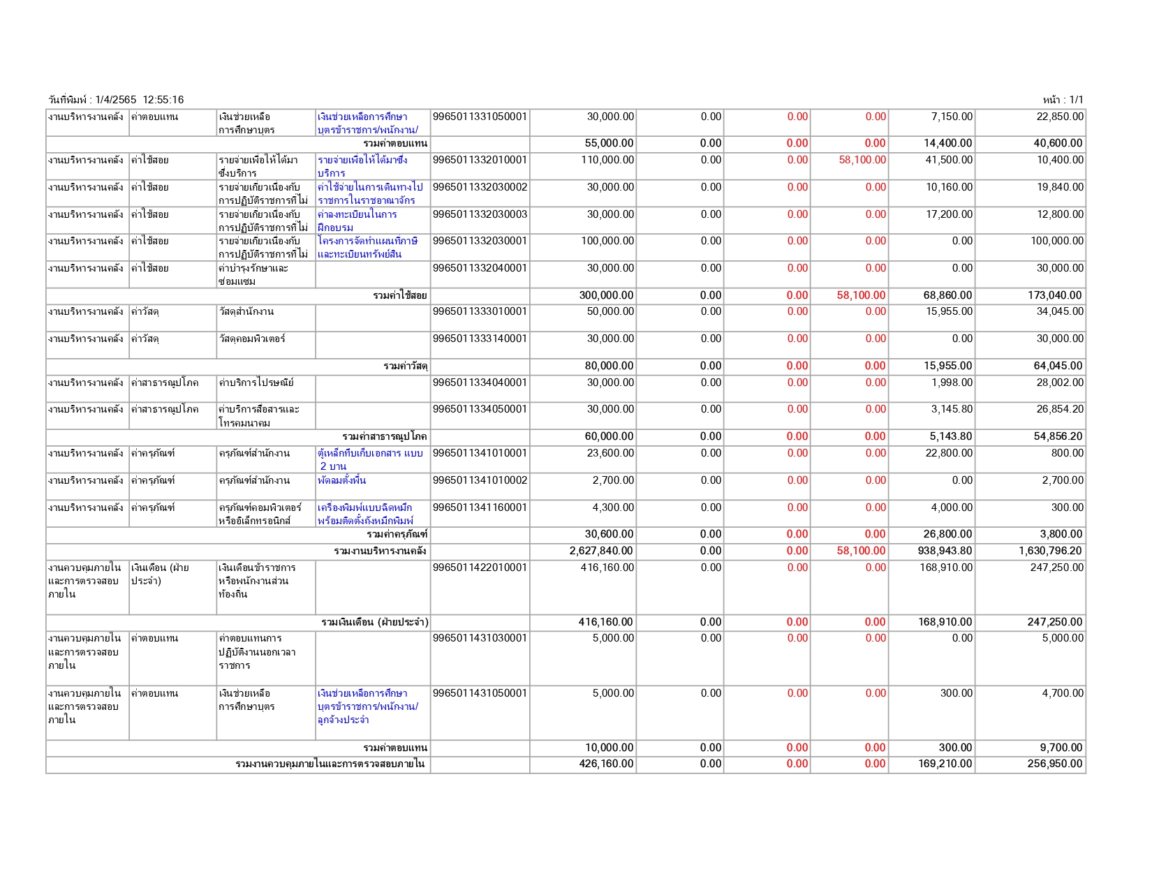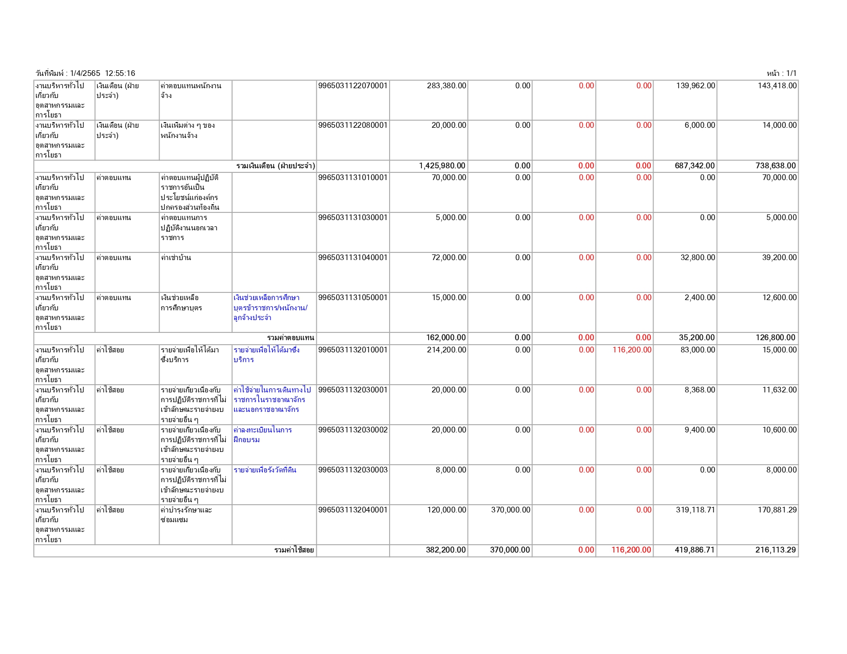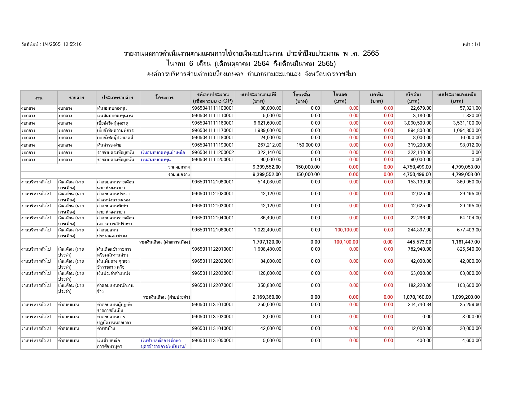 รายงานผลการดำเนินงานตามแผนการใช้จ่ายงบประมาณประจำปีงบประมาณ 2565 รอบ 6 เดือน